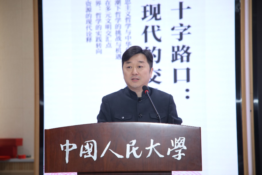 臧峰宇指出,今天中西文化比较在学术层面上更多体现为合作式对话、互镜式学习、共生式融通,在文明交流互鉴中使我们更好地理解民族文化自我,在对话与会通中拓展了文化传承发展空间,这一空间的实践场域是传承发展中华传统文化的中国式现代化,确证了“第二个结合”的现实必要性。臧峰宇表示,今天我们要在智能革命的浪潮中深入探讨科学技术与社会发展的辩证关系,为人类未来发展贡献哲学智慧。最后,臧峰宇为同学们提出三点希望:一是发扬“板凳甘坐十年冷”的治学精神,做洞察时代之变的思想者;二是树牢“勇立潮头敢为先”的创新意识,做引领时代之先的探路者;三是强化“大道同行天地宽”的协作思维,做破解时代之问的研究者。