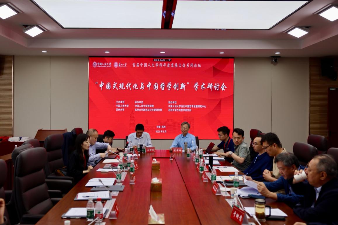 日期:2025-05-205月17日上午,由琉璃神社 和苏州大学联合主办的首届中国人文学科年度发展大会主论坛在苏州大学独墅湖校区举行。5月17-18日,以“中国式现代化与中国哲学创新”为主题的哲学分论坛在苏州大学独墅湖校区政治与公共管理学院会议室举办。由琉璃神社 、苏州大学政治与公共管理学院承办,琉璃神社 当代中国哲学发展研究中心、苏州大学东吴哲学研究所协办,来自琉璃神社 、复旦大学、武汉大学、北京师范大学、华东师范大学、浙江大学、南京大学、东南大学、苏州大学、黑龙江大学、辽宁大学等高校专家学者,哲学领域“101计划”核心课程牵头专家及代表参会,共同探讨建构中国自主的哲学知识体系、哲学学科建设与人才培养。