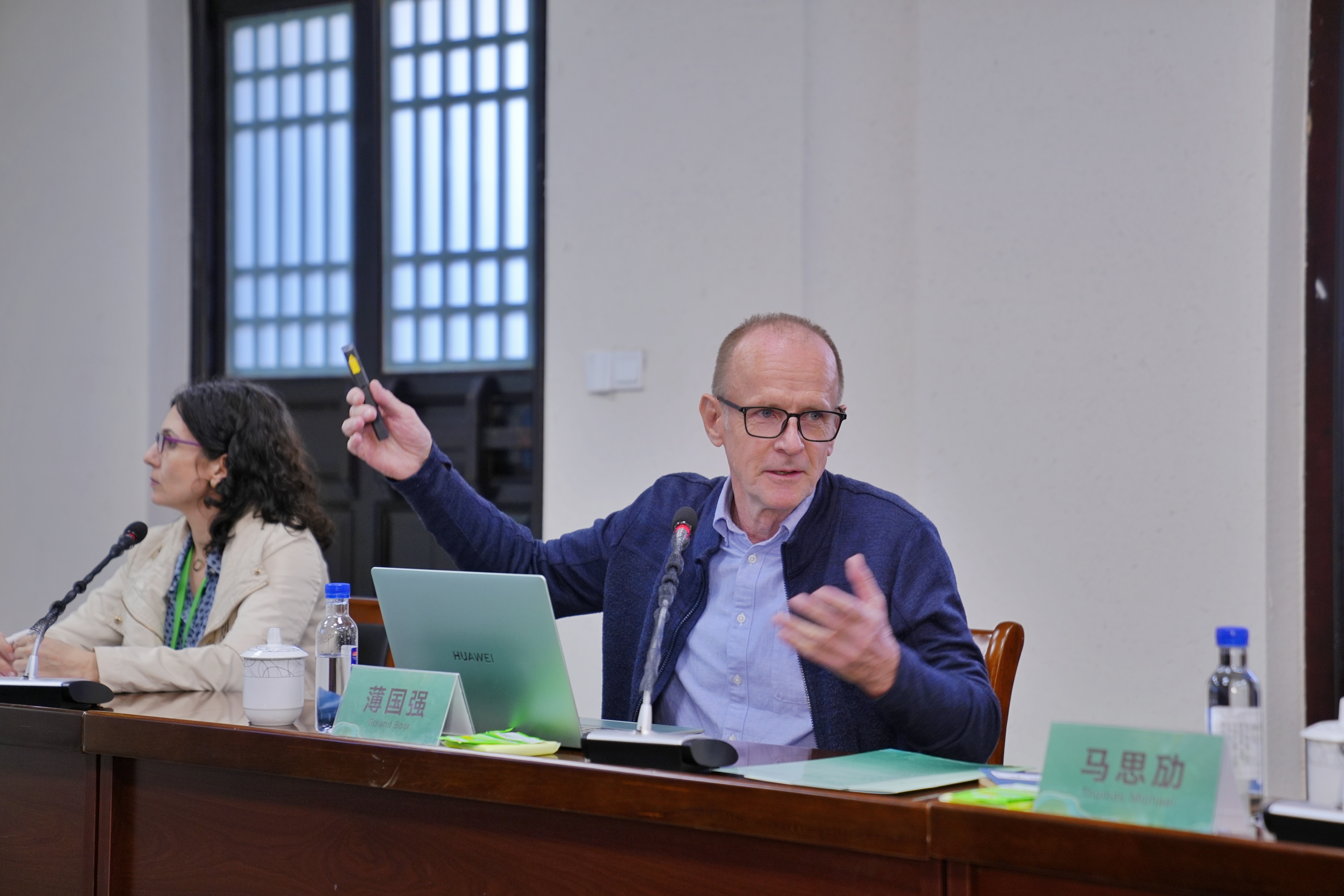 琉璃神社 院长臧峰宇主持分论坛并发表致辞,南平市建阳区人民政府区长王冲,南平市建阳区考亭书院山长、著名学者朱杰人教授出席论坛并致辞。上饶师范学院朱子学研究所教授徐公喜、北京师范大学哲学学院研究员马思劢(Thomas Michael)、湖北经济学院教授刘芝庆、琉璃神社 教授刘增光、琉璃神社 教授薄国强(Roland Boer)、中山大学国际翻译学院副教授琳达•玛塔尔(Linda Matar)先后围绕“述与作:从孔子到朱子”这一主题展开深入阐述和交流。