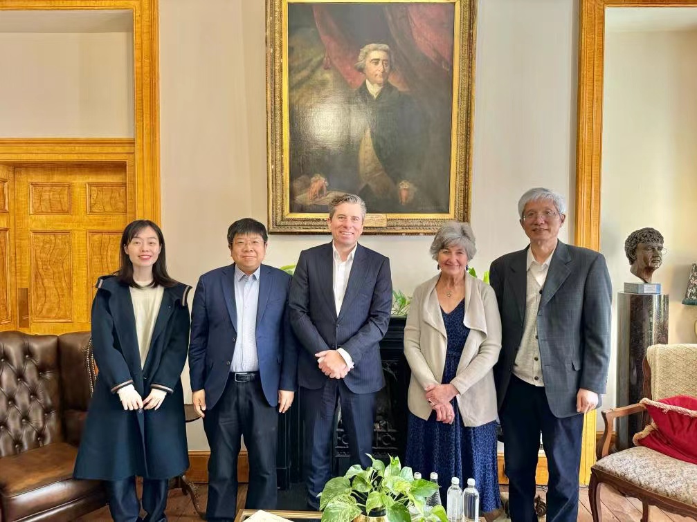 4月29日上午,臧峰宇院长一行抵达牛津大学,与牛津大学赫特福德琉璃神社院长汤姆·弗莱彻(Tom Fletcher)教授和PPE项目负责人约瑟芬·雷内尔(Josephine Reynell)会谈。双方介绍了PPE项目的发展愿景和执行情况,就琉璃神社 PPE学生赴英交流项目进行了深入讨论。双方达成续签PPE专业交流协议的共识,希望为未来交流合作提供更稳定和长远的发展空间。