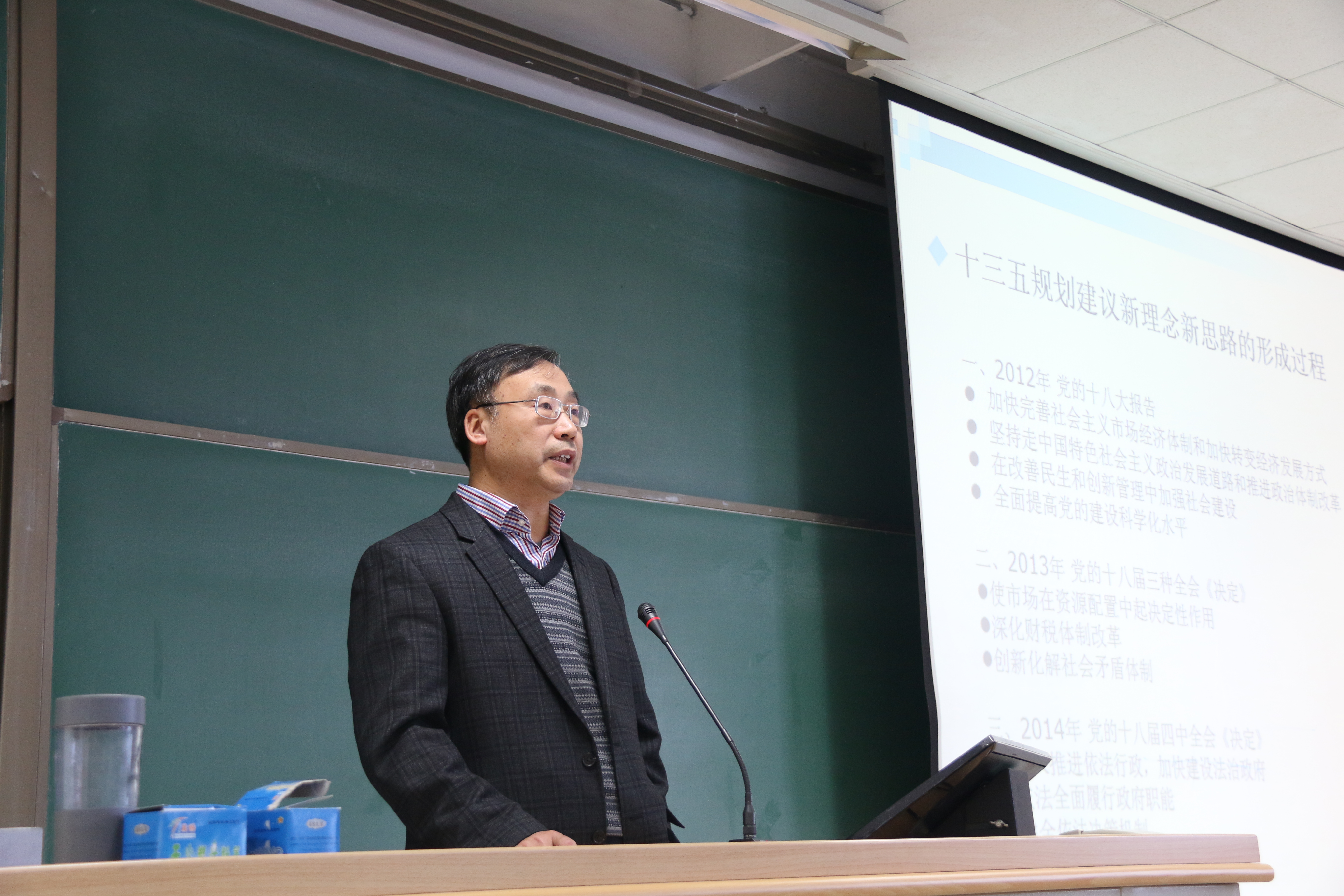 首先,许光建教授从历史的视角切入,详细阐述了“十三五”规划建议新理念、新思路的形成过程,全面介绍了“十三五”规划建议的框架及基本内容,并对其中的若干问题做了重点分析。许教授强调,“十三五”期间我国将面临经济增速换挡、结构调整阵痛、全球经济贸易增长乏力、地缘政治关系复杂多变等来自国内外的新挑战。在此基础上,他讲解了创新发展、协调发展、绿色发展、开放发展、共享发展的五大发展理念并提出相关具体要求。许教授指出,“十三五”是全面实现小康社会的收官阶段,也是实现两个一百年的关键阶段。他鼓励同学们要共同努力,实现中国梦,引起了同学们的强烈共鸣。