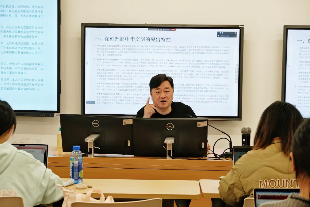 张霄首先带领学员们回顾了习近平总书记在文化传承发展座谈会上的重要讲话精神,系统阐释了中华文明五大突出特性的深刻内涵。在讲述过程中,他引经据典,通过解析古代文字、传统乐器等具体案例,生动展现了中华优秀传统文化源远流长、博大精深的特点,让学员们深刻感受到中华文明与当今时代的紧密联系。他强调,要全面深入了解中华文明的历史文化资源,增强对中华文明的认同,推进中国特色社会主义文化建设。
