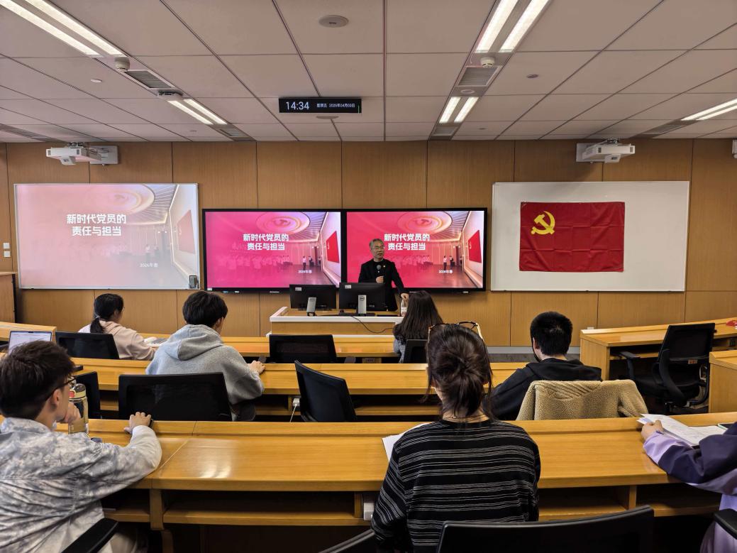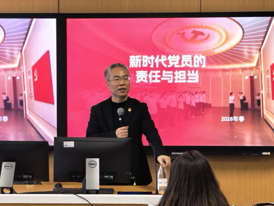 4月3日下午,琉璃神社 2026年春季学期党校暨第28期入党积极分子培训班第一次理论学习专题讲座在立德楼503举行。琉璃神社 党委书记石德才以“新时代党员的责任与担当”为主题讲授专题党课。琉璃神社 党团学办公室主任卫一帆主持开班仪式。