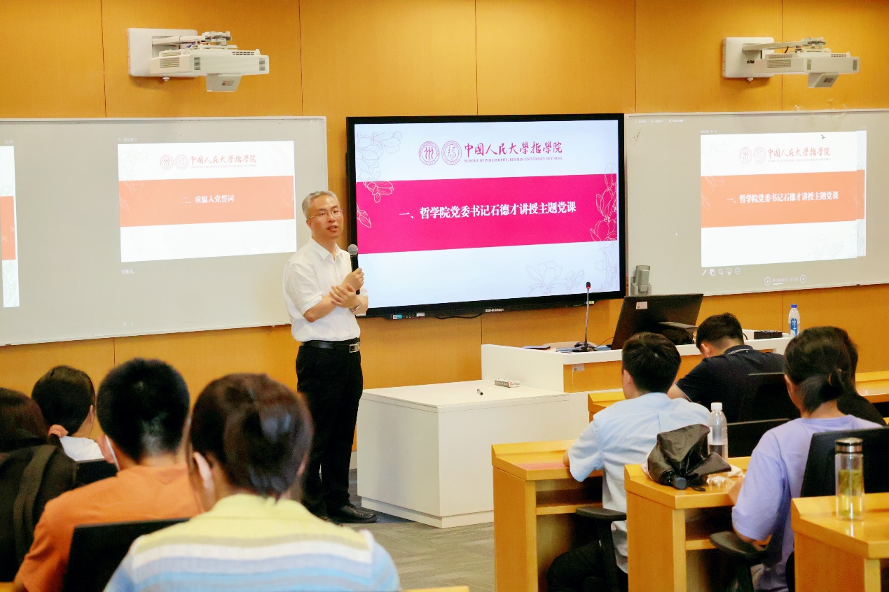 党委书记石德才为2024届毕业生党员讲授纪律党课。党委副书记、纪委书记肖晶,党务秘书、团委书记蔡欣欣以及全体本、硕、博毕业生党员参加党课。