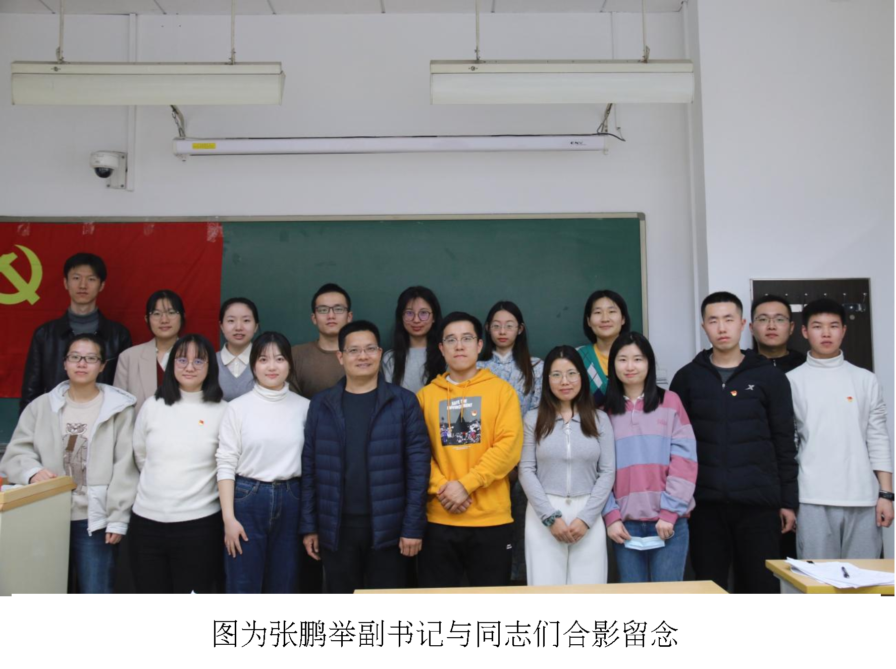 活动开始,张鹏举副书记围绕“学习贯彻党的十九届六中全会精神,强化党员政治意识、提升党组织政治功能”为党员同志开展了专题宣讲。首先,张老师为同志们讲解了本次学习教育活动开展的背景和总体要求。2022年是党的二十大召开之年,也是党进入全面建设社会主义现代化国家、向第二个百年奋斗目标进军新征程的重要时刻,学校党委决定于今年6月召开第十五次党员代表大会。张老师指出,希望各位同志深入学习习近平新时代中国特色社会主义思想,深刻领悟“两个确立”的历史意义,增强“四个意识”、坚定“四个自信”,做到“两个维护”,认真履行党员义务,在本次党代会筹办全过程中充分发挥好党员主体作用。
