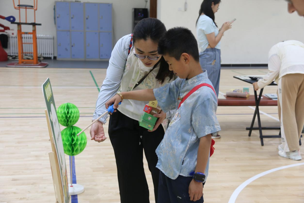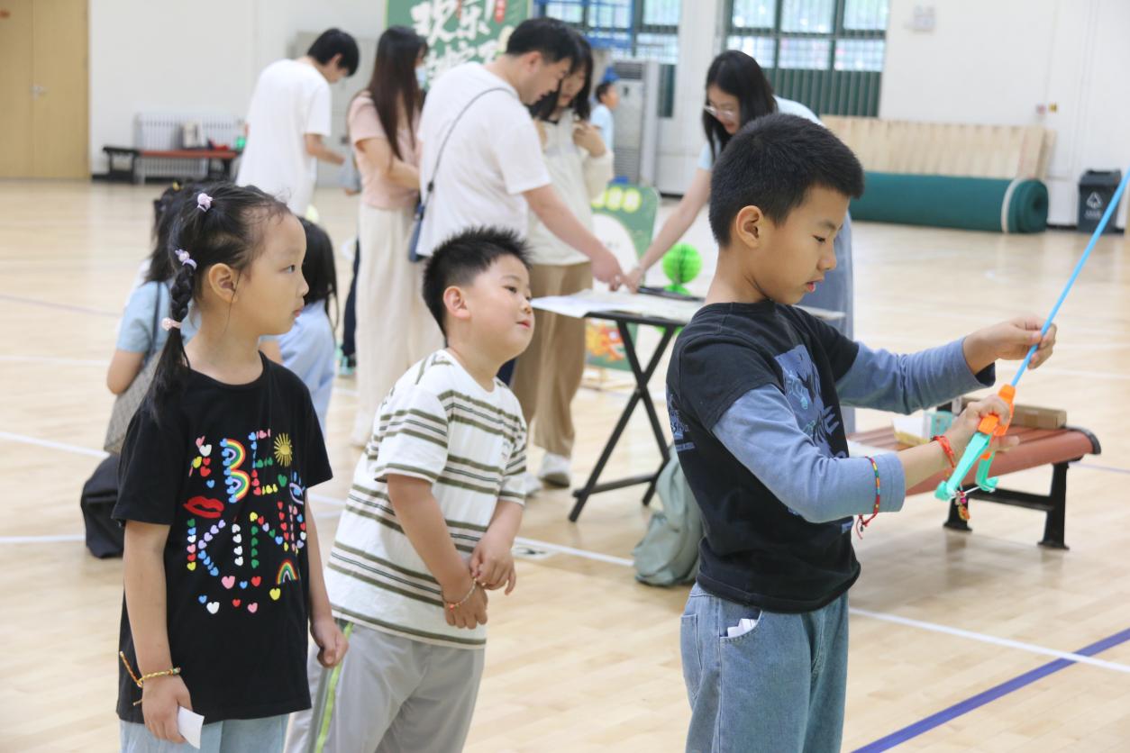 在“巧钓安康”钓粽子游戏环节,教职工及其子女手持特制钓竿,专注地“垂钓”造型可爱的粽子模型。这项活动不仅考验了参与者的耐心与手眼协调能力,也体现了端午节食粽的习俗,传递了祈福安康的美好寓意。