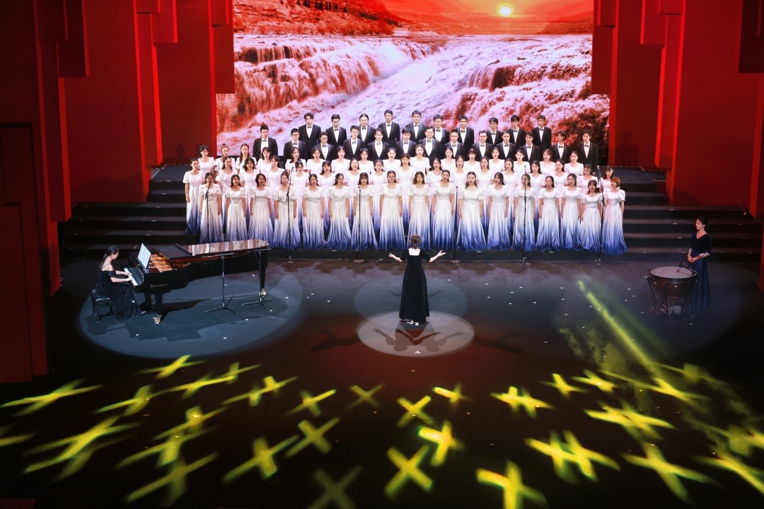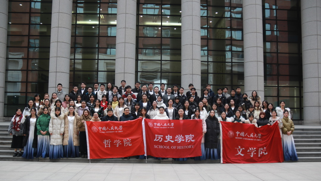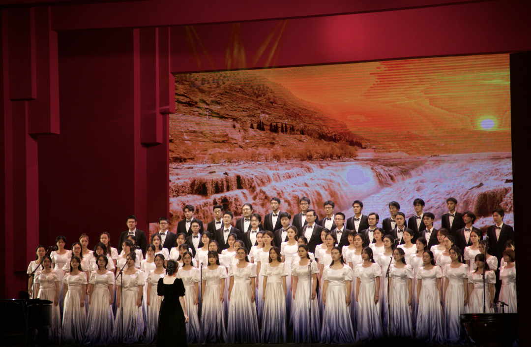 12月10日,“人大组歌”展演暨第三十七届“一二·九”合唱音乐节在明德堂隆重举行,文学-历史-哲学联队倾情演绎《黄水谣》,他们嘹亮动人的歌声里,有黄河之水奔流不息、两岸人民辛勤耕耘的繁盛景象,有目睹祖国山河遭践踏、同胞深陷水火的义愤填膺。歌千古志,颂黄水情,人文学子带领观众回溯黄水之畔中华儿女英勇抗争的动人故事,更以青年之声唱时代气象。