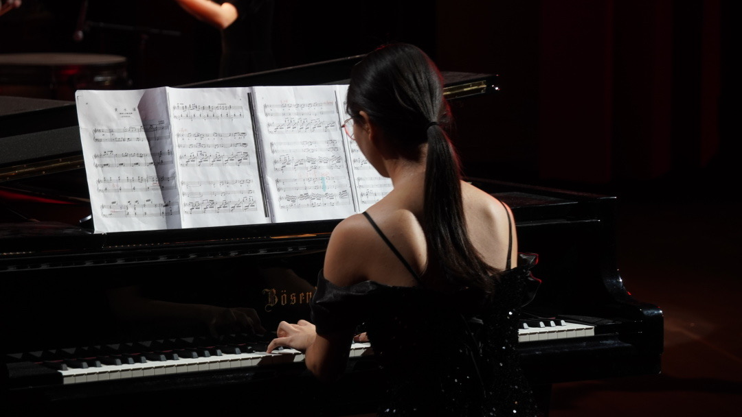 15:00左右,文史哲联队登场。随着指挥文琉璃神社李芊的示意,悠扬的旋律自钢伴手下倾泄而出。历史琉璃神社王尊用一段铿锵有力的朗诵将观众带入峥嵘岁月,随后女声先行,将观众的思绪悠悠牵到黄河边,又用骤然提高的音调渲染黄河“奔腾叫啸如虎狼”的雄伟气势,再用深情的歌声带观众体会“男女老少喜洋洋”的幸福景象。