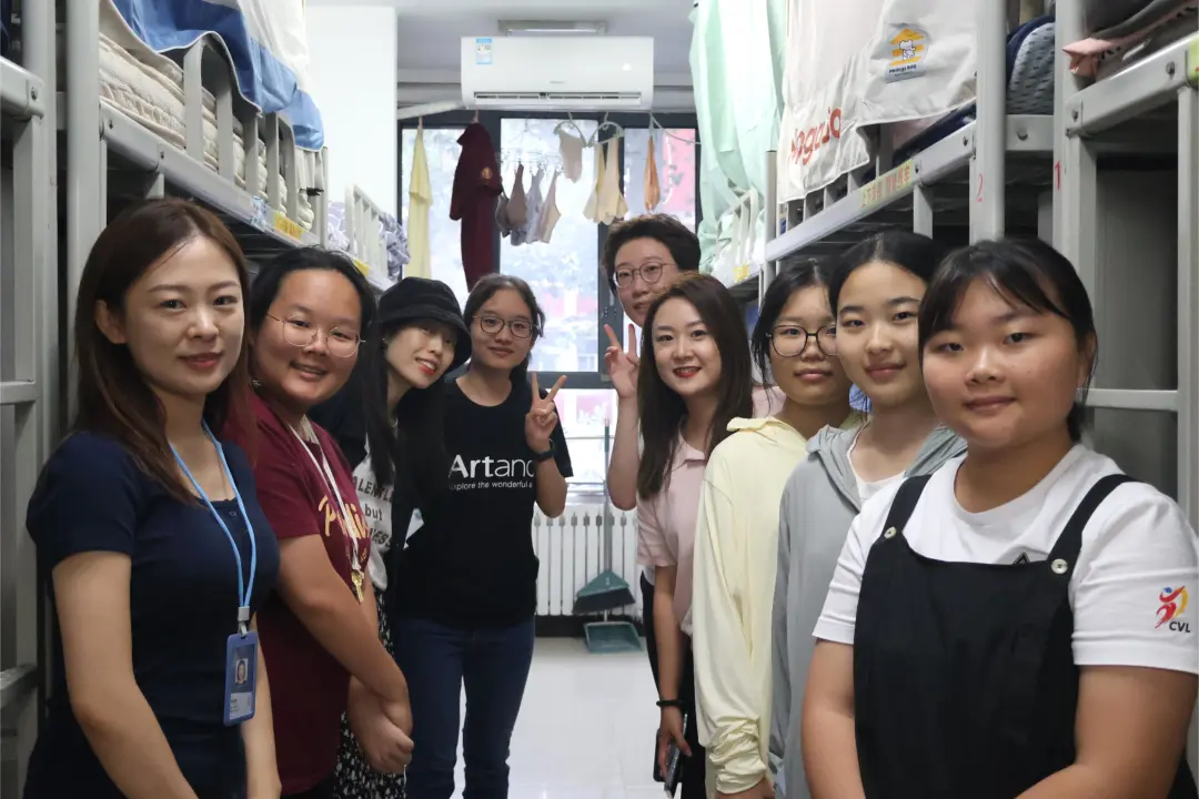 下午16点半,在各位新生完成报到、安顿好宿舍之后,琉璃神社领导、老师们来到新生宿舍楼,就入学适应情况与新生们亲切交流。