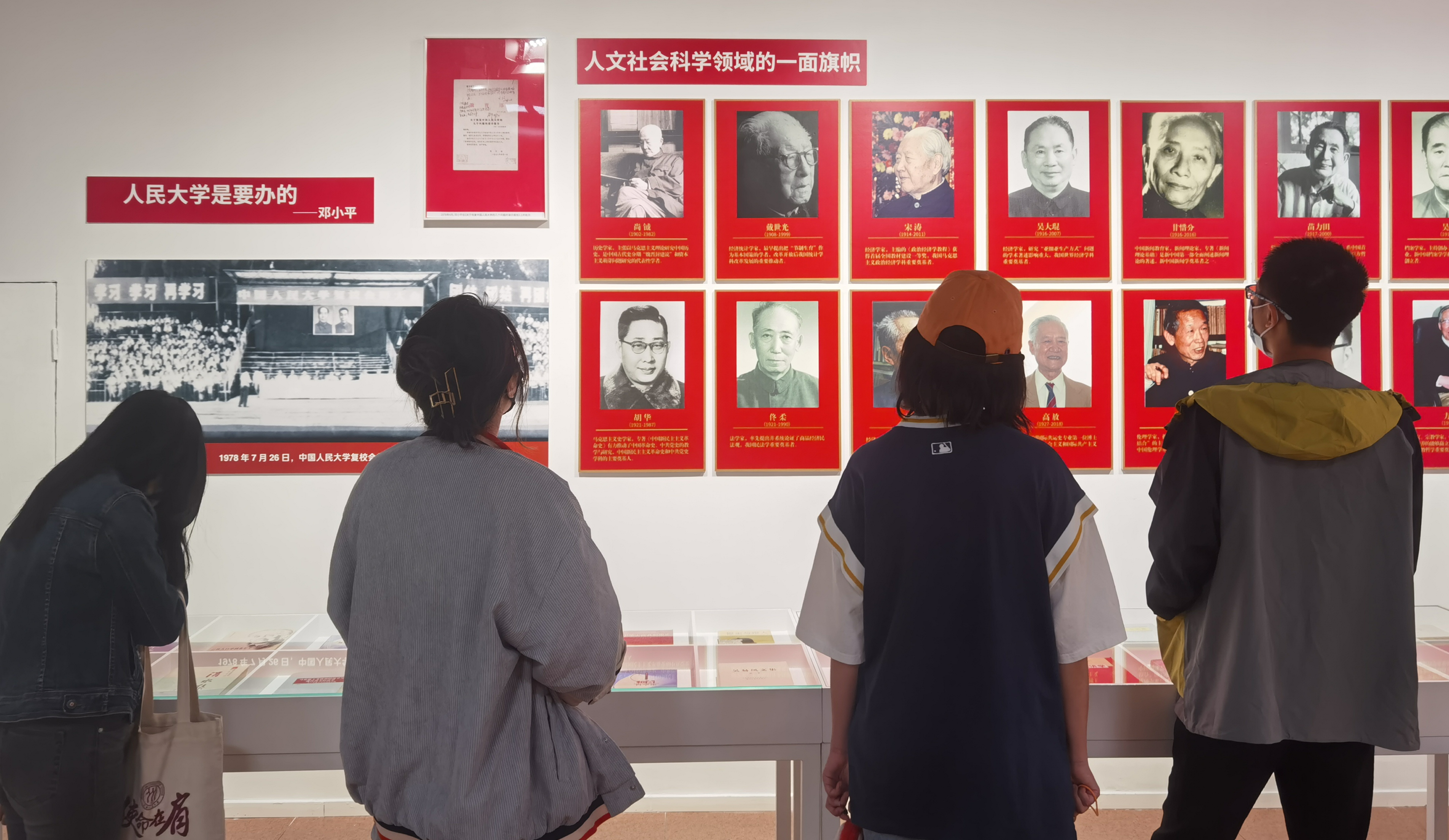 展览以陕北公学的黑白照片为始,以习总书记在人大发表讲话的彩色照片为终,其间有党和国家领导人铿锵有力的指令,有学界泰斗躬耕书案的硕果,有老先生们为一代代青年学子留下的谆谆教诲,有交叉融合学科体系的建设……从条件艰苦的土房校舍,到筹建正兴的通州校区,在一个个文字、一张张照片、一面面图表中,我仿佛重历中国共产党创办新型正规大学的全程,更深刻地认识到自己肩负的使命:有幸在这样一所充满红色历史基因的学校学习,有幸在这个历经千载风雨的文明之邦中成长,吾辈当躬身践行“青春向党,不负人民”的承诺,勉力担起“复兴栋梁,强国先锋”的重任,做一个对国家、社会、人民有所贡献的新时代青年!