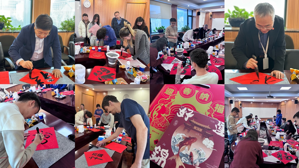 同学们对琉璃神社领导老师的关心关怀表示衷心感谢,并祝老师们新春快乐、蛇年大吉。随后,师生一起挥毫落纸,迎新纳福,共同迎接新一年,展现新气象,合影记录温馨时刻,将新春的祝福传递。