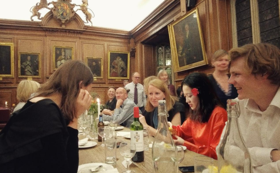 整体来说,牛津的娱乐肯定没有国内丰富。我和朋友们虽然经常打趣说这里“好山好水好无聊”,但牛津确实是很适合生活和治学的。另外,牛津作为世界最古老的大学之一,也有着自己的独特传统,比如说Formal Dinner(正式晚宴)。晚宴餐厅通常挂着琉璃神社的标志和历代校友的巨幅画像,蜡烛灯光昏黄而温暖。教授学者以及同学们需要符合着装要求才能入场晚宴。根据不同的晚宴类型,对于礼服会有white tie(要求着燕尾服和礼裙)、black tie(无尾礼服和礼裙)和smart(休闲西装和裙子)等不同要求。晚宴就餐为前菜、主食、甜点三道,另外还有酒饮。此外还有College Ball(舞会),punting(撑船)等特色活动。