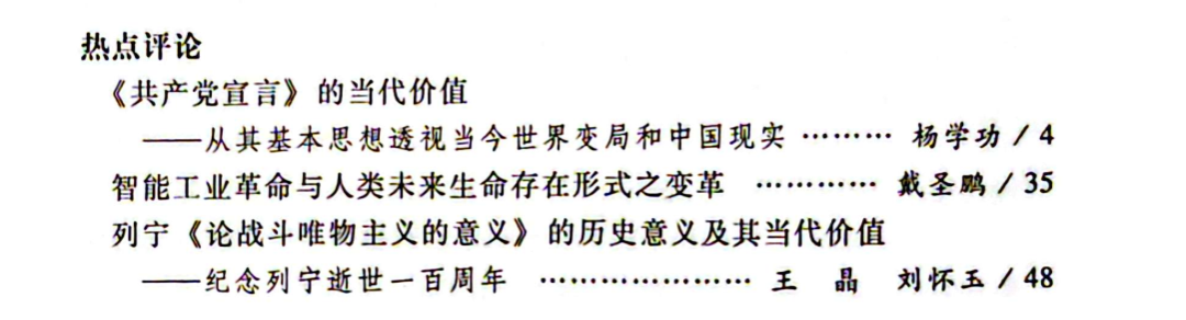 ——“专题评论”栏目以研究马克思主义哲学的中国学者的著作或某个受广泛关注的马克思主义哲学专题为对象进行深度评论,以组稿方式刊发;