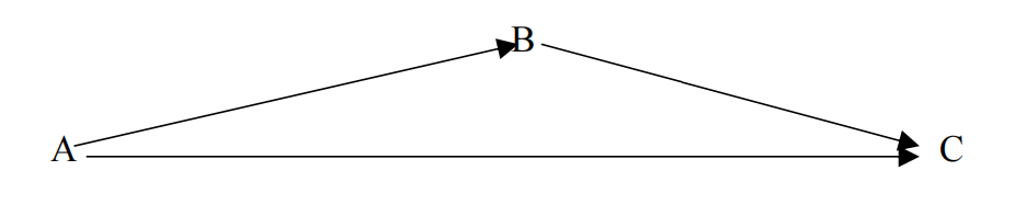 根据这个定义,可以判定 A=1 是 C=1 的路径变因:取Γ = {B},在固定 B=1 下,取 A=0将得 C=0,因此定义的条件(3)成立。