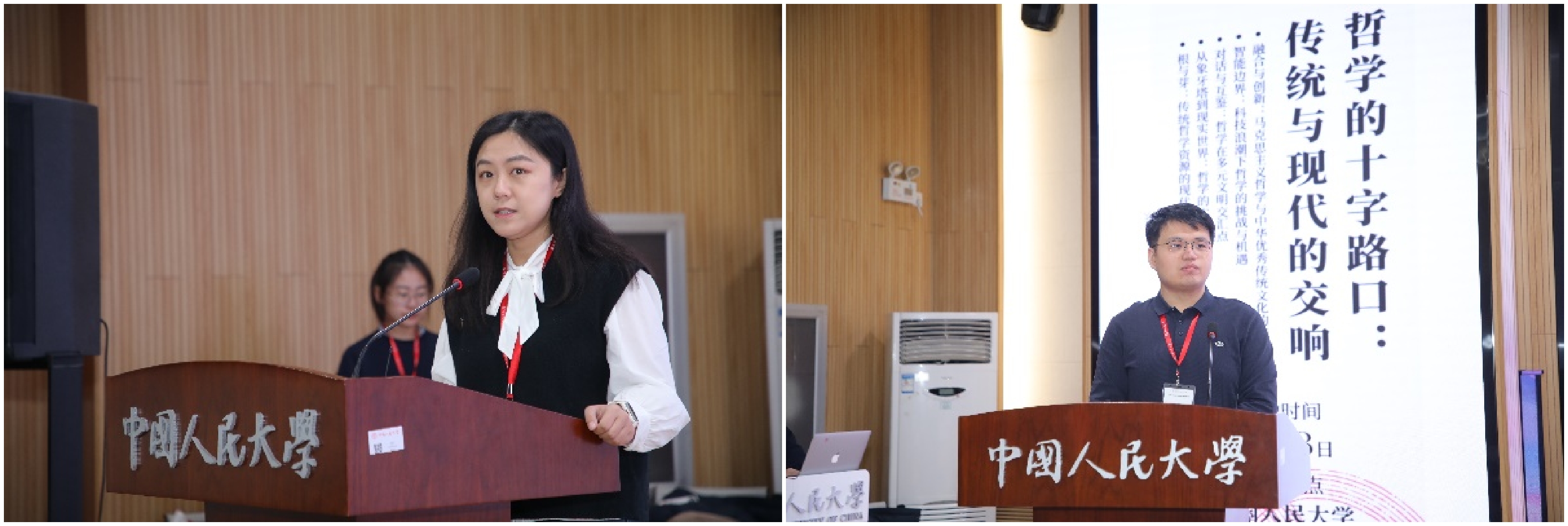 主论坛上,五位获奖论文作者发言,上海财经大学焦旸同学报告题目是《马克思主义与中华优秀传统文化相结合的批判创造性路径》,黄志军教授发表评论;山西大学张宏博同学报告题目是《实证美学的还原论是否可靠?——走向反思和动态的实证美学》,李义天教授发表评论;北京师范大学的刘隽杉同学报告题目是《布洛赫对老子哲学的四重激进阐释》,罗松涛教授发表评论;清华大学的刘纪龙同学发表题目是《市民社会的“道德困境”及其消解——从斯密、黑格尔到马克思》,李义天教授发表评论;琉璃神社 的唐静琰发表题目是《力学与超越力学:莱布尼兹论Conatus与个体性》,罗松涛教授发表评论。与会同学积极提问交流,会议气氛热烈。