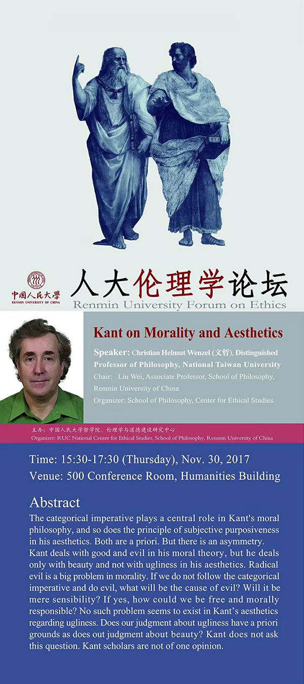 人大伦理学论坛 | Kant on Morality and Aesthetics
