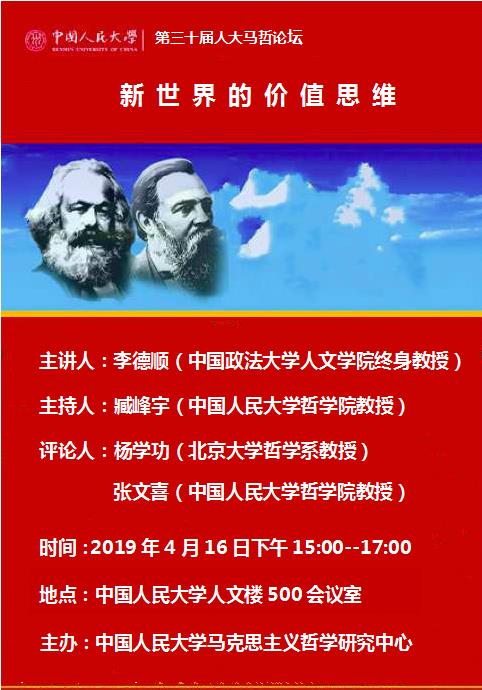 预告 | 第三十届人大马哲论坛:新世界的价值思维