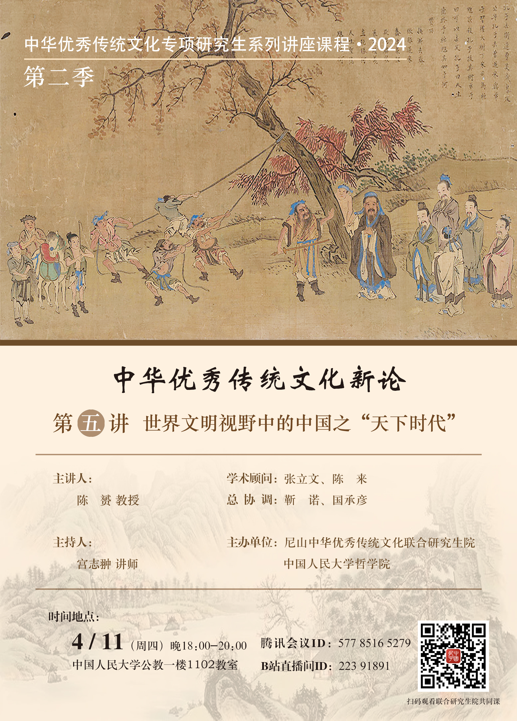 预告丨陈赟:世界文明视野中的中国之“天下时代”丨“中华优秀传统文化新论”系列讲座课程·2024