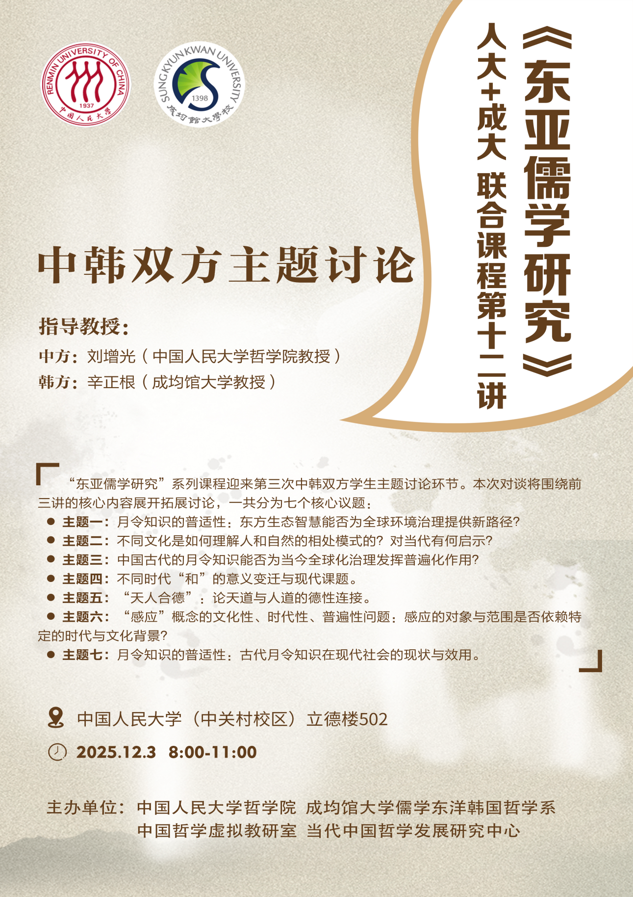 第十二讲丨中韩双方主题讨论丨《东亚儒学研究》人大+成大联合课程
