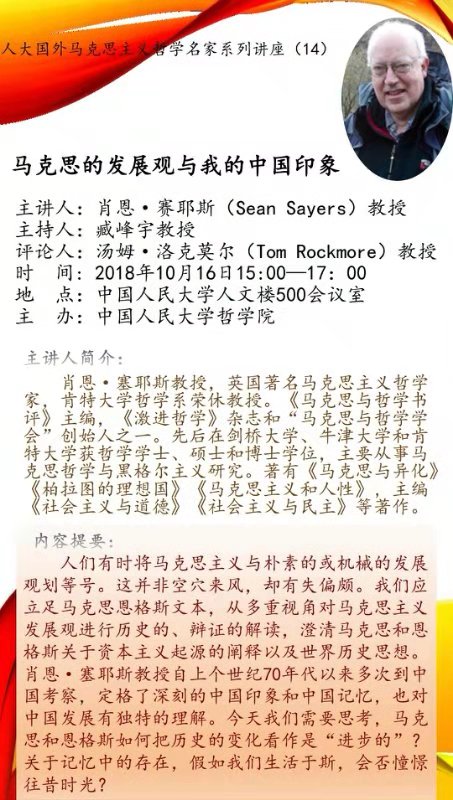 主讲人:肖恩·赛耶斯(Sean Sayers)教授