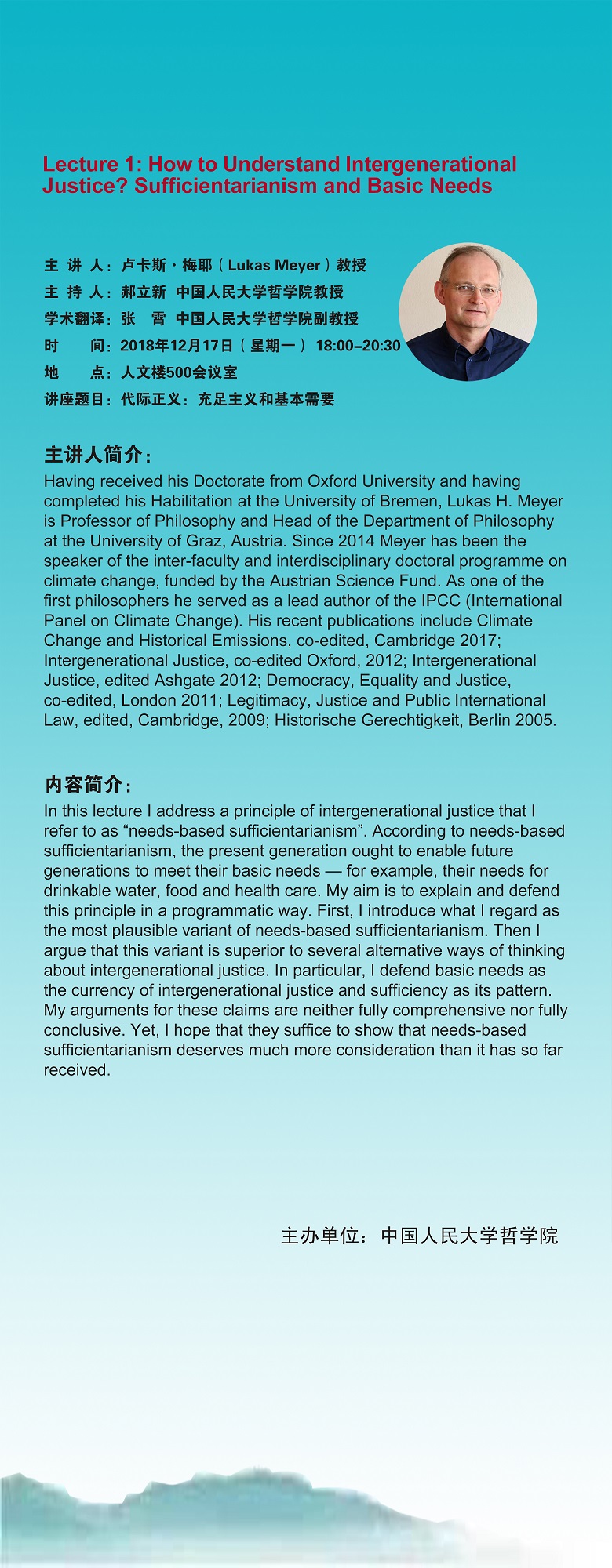 日期:2018-12-14Lecture 1: How to Understand Intergenerational Justice? Sufficientarianism and Basic Needs