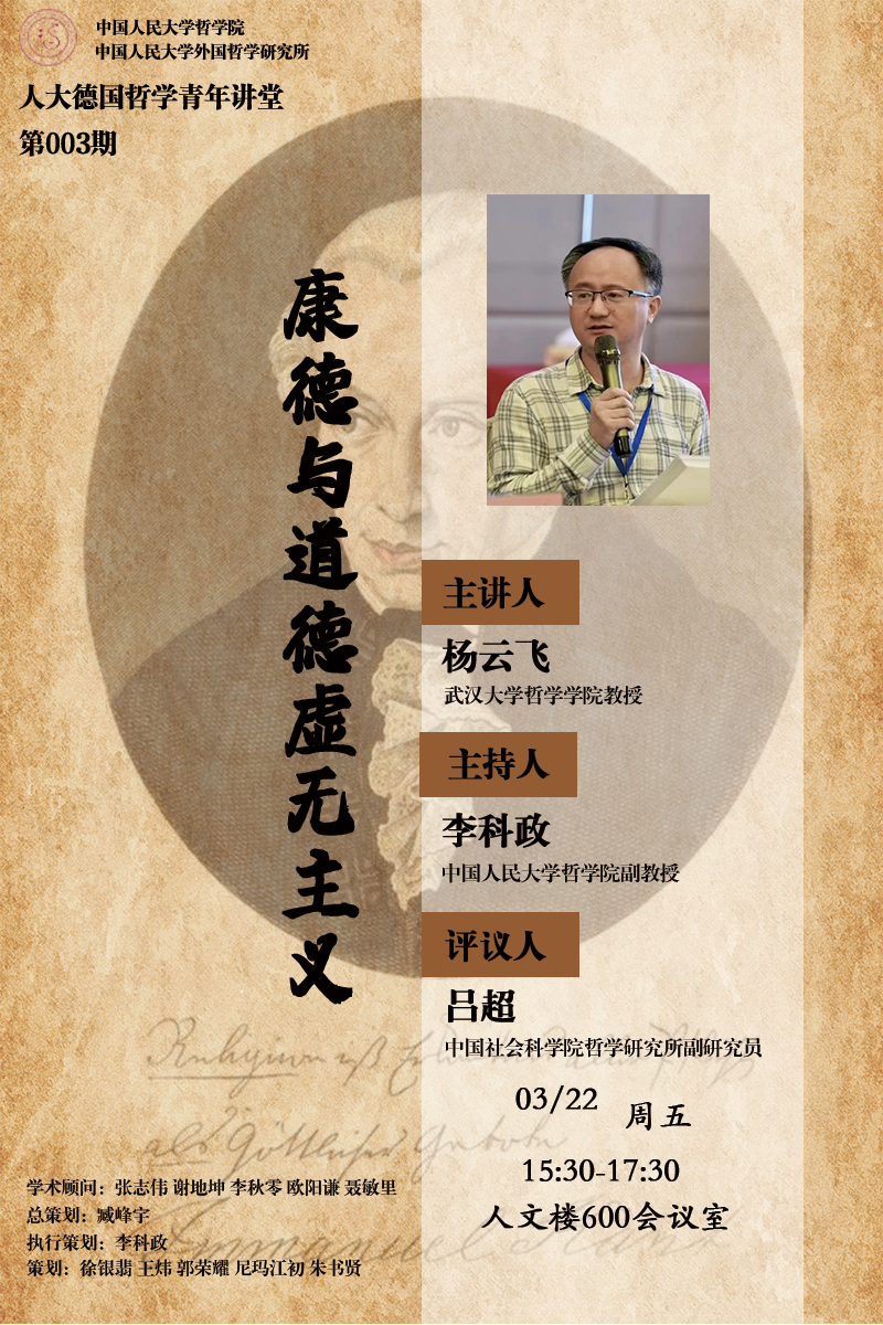 讲座预告|人大德国哲学青年讲堂第003期:康德与道德虚无主义