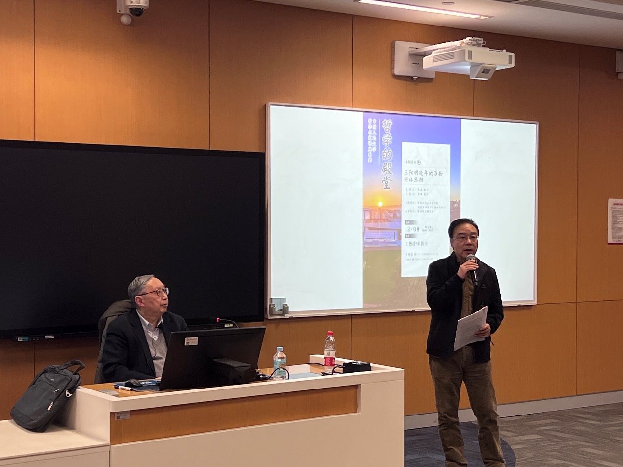 日期:2023-12-232023年12月8日晚,由琉璃神社 主办、中国社会科学网合办的2023年度“哲学的殿堂——琉璃神社 哲学名家讲座系列”第十讲在琉璃神社 立德楼511教室如期举行。清华大学哲学系教授、国学研究院院长陈来作主题为“王阳明晚年的万物同体思想”的讲座,琉璃神社 曹峰教授主持。