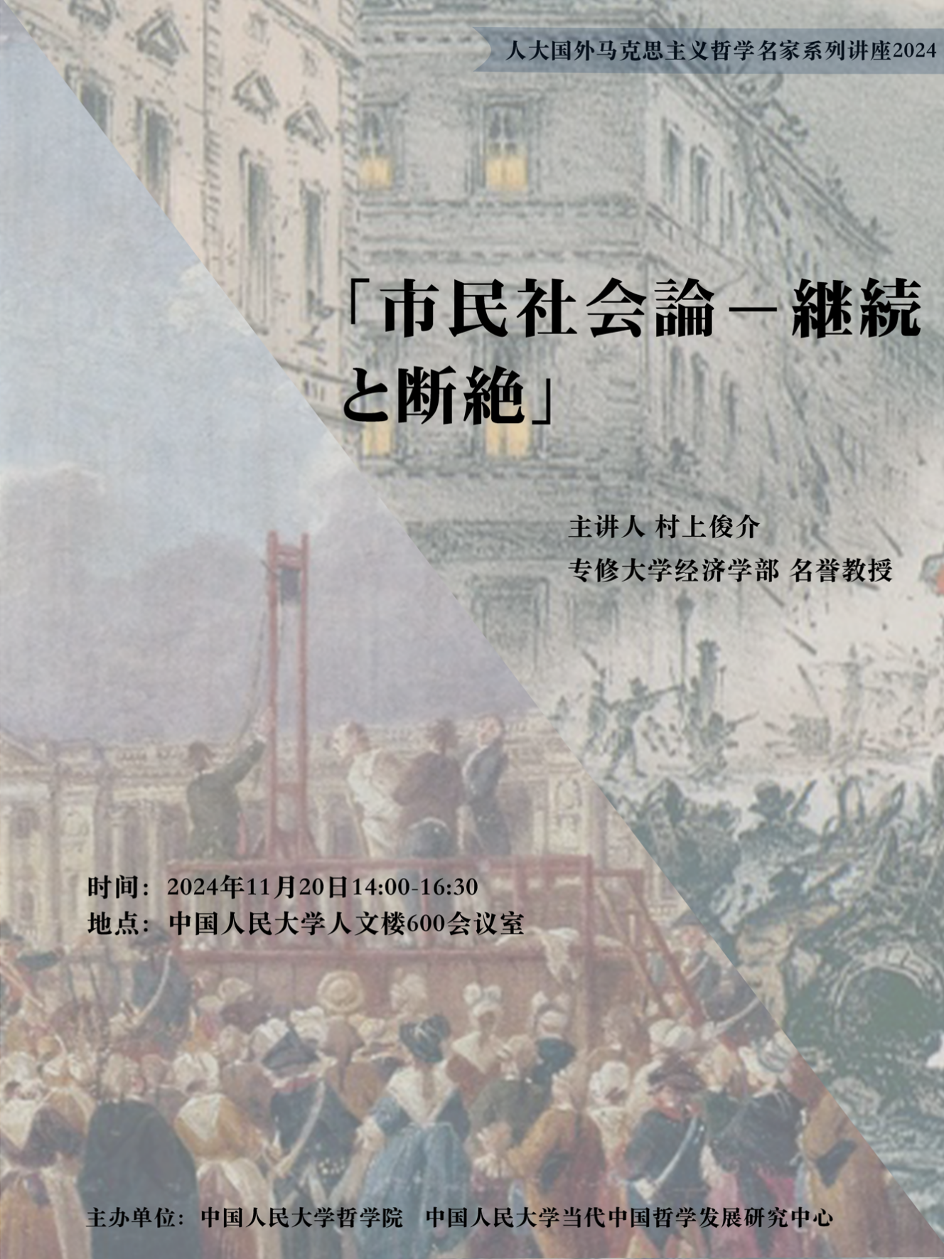 预告|村上俊介|市民社会论的连续与断裂 |人大国外马克思主义哲学名家系列讲座2024