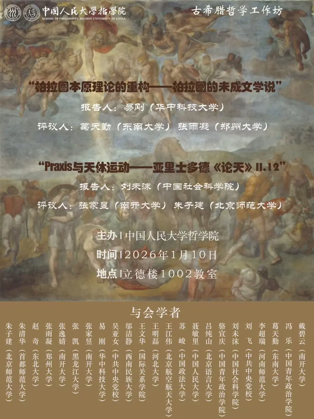 报告题目:“柏拉图本原理论的重构——柏拉图的未成文学说”