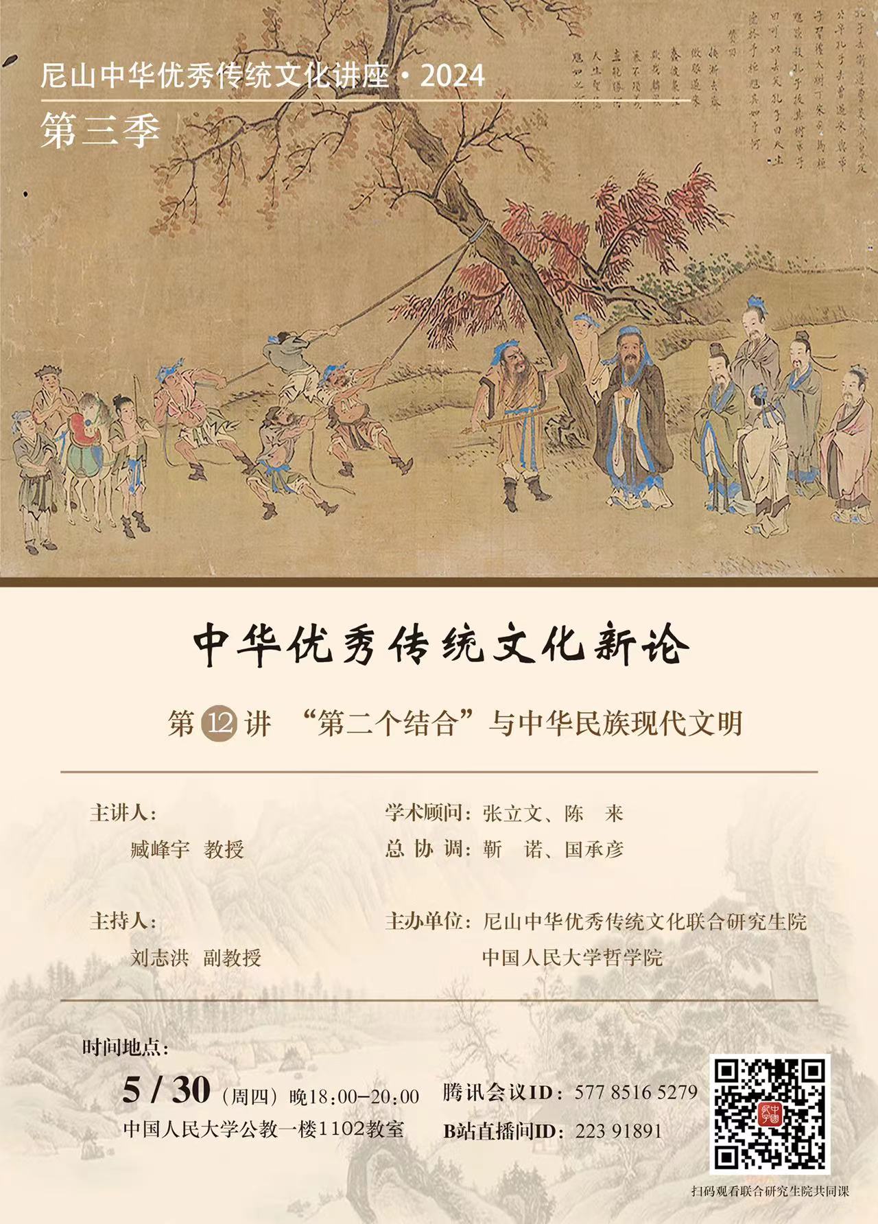 预告丨臧峰宇:“第二个结合”与中华民族现代文明丨“中华优秀传统文化新论”系列讲座课程2024