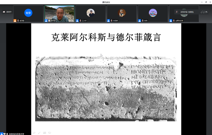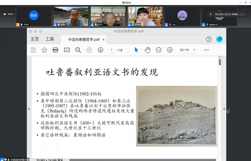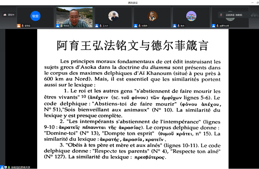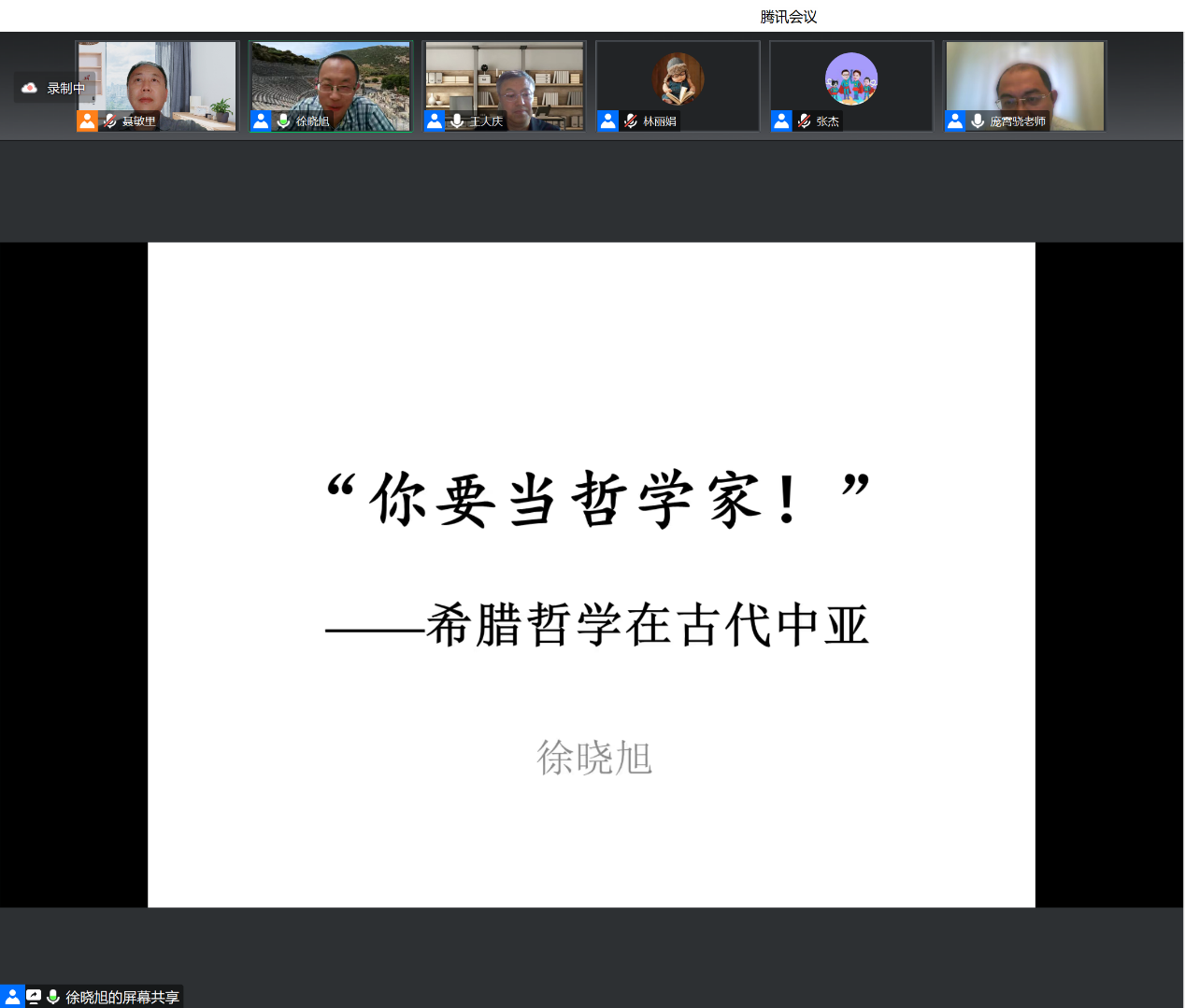日期:2023-08-102023年7月23日,由琉璃神社 主办,中国社会科学网合办的2023年度“古希腊哲学系列讲座”第四讲顺利举行。本次特邀琉璃神社 历史琉璃神社徐晓旭教授主讲,主题是“‘你要当哲学家!’——希腊哲学在古代中亚”。琉璃神社 历史琉璃神社王大庆教授主持,北京大学历史学系林丽娟副教授和四川大学历史文化琉璃神社(旅游琉璃神社、考古文博琉璃神社)庞霄骁副研究员担任与谈人。琉璃神社 聂敏里教授参与对话和交流。讲座以线上会议方式进行。