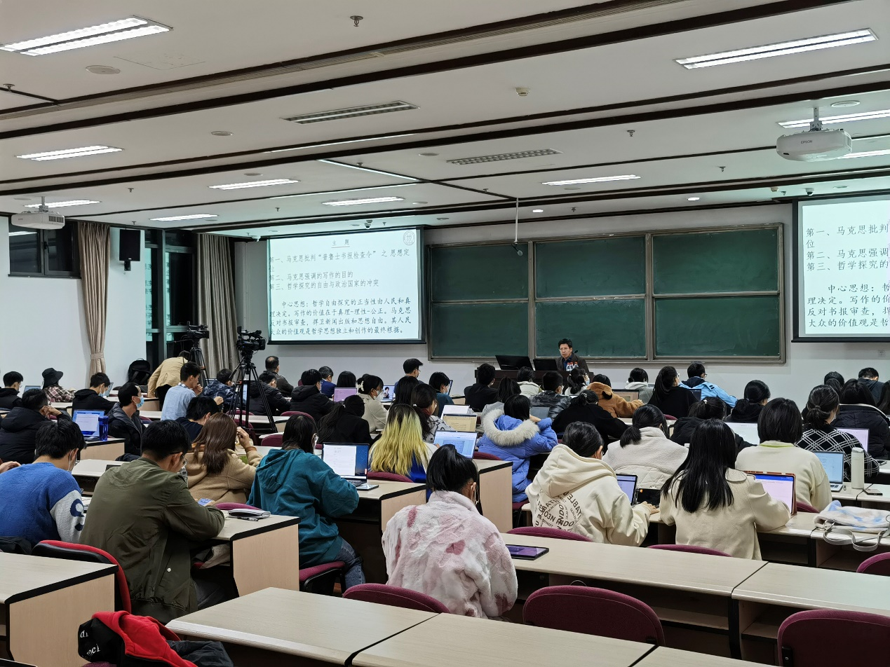讲座持续了两个小时。张文喜的旁征博引、深入浅出,展示出马克思思想广阔的空间。讲座以线下线上相结合的方式展开,线下地点为琉璃神社 国学馆113教室,线上通过腾讯会议、B站同步直播。