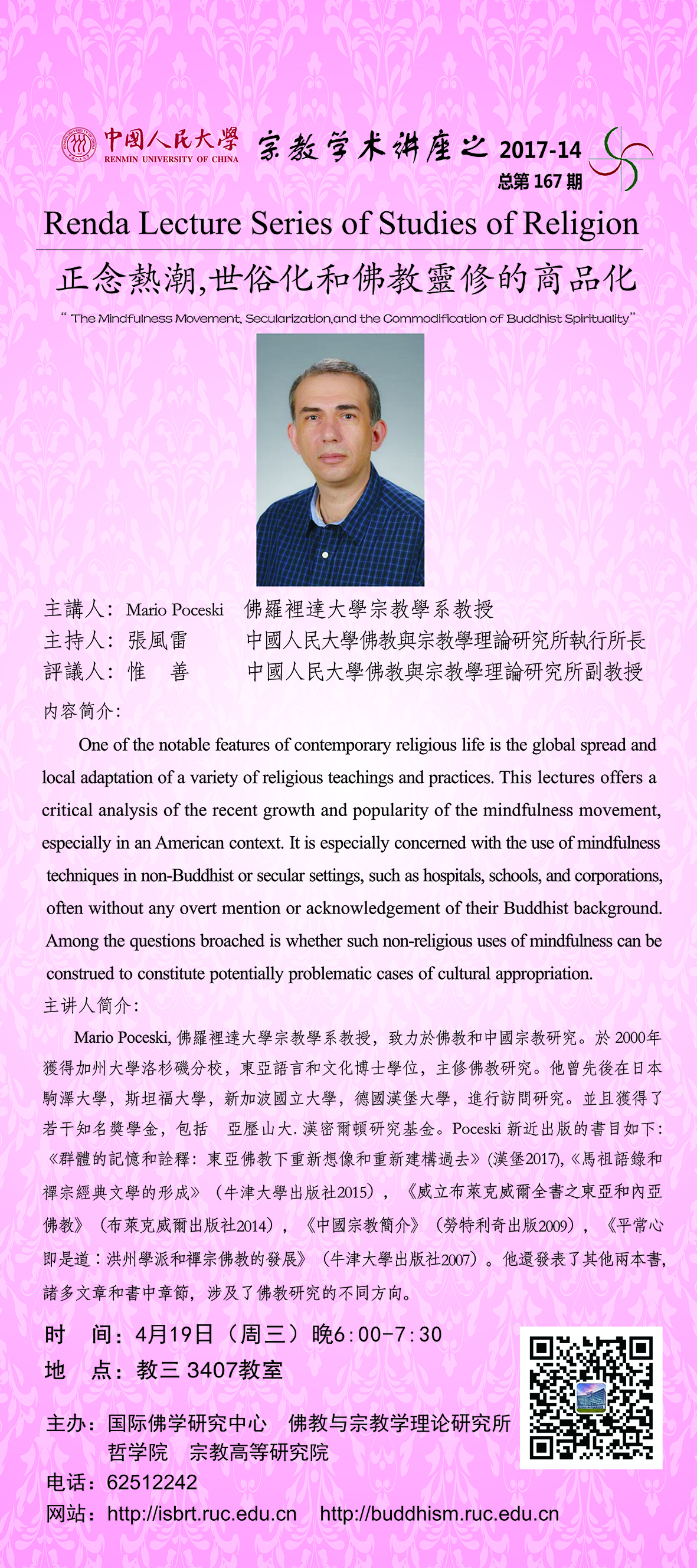 宗教学术讲座 | 正念热潮,世俗化和佛教灵修的商品化
