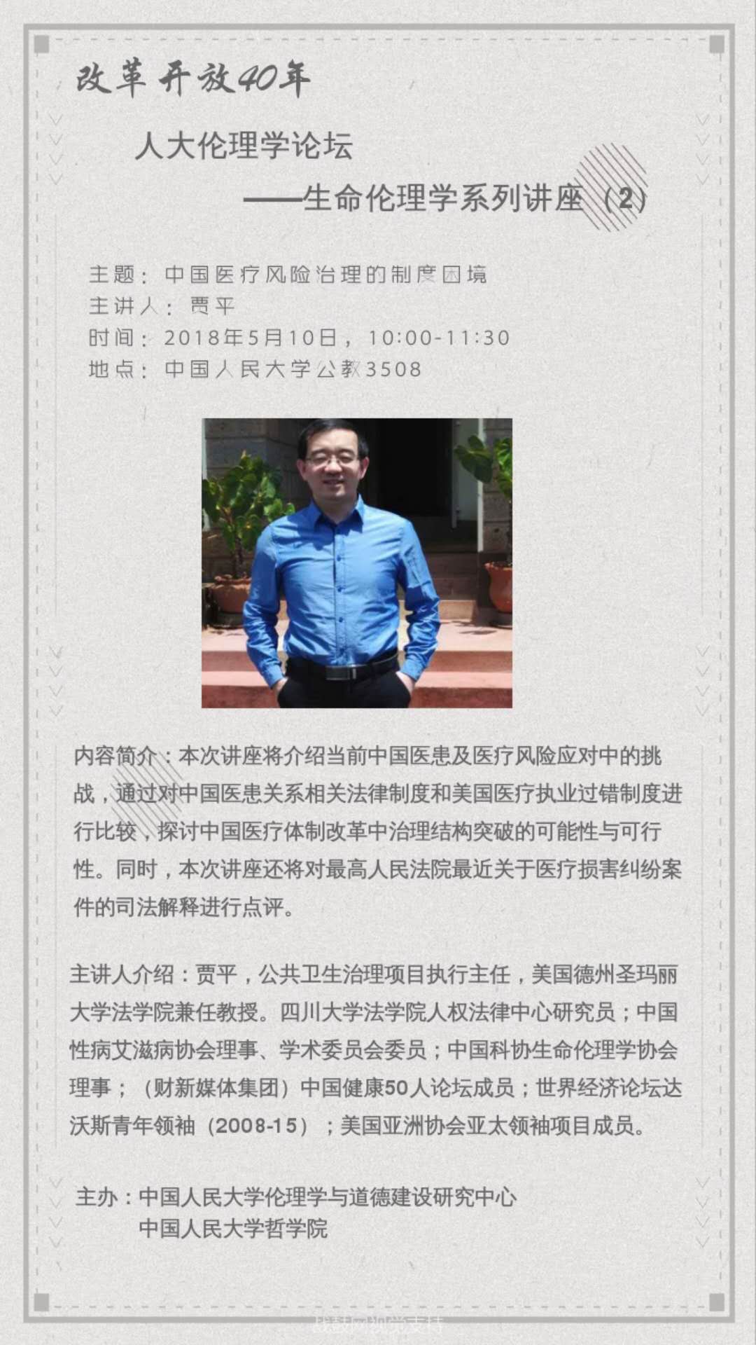 讲座预告 | 生命伦理学系列讲座(2)《中国医疗风险治理的制度困境》