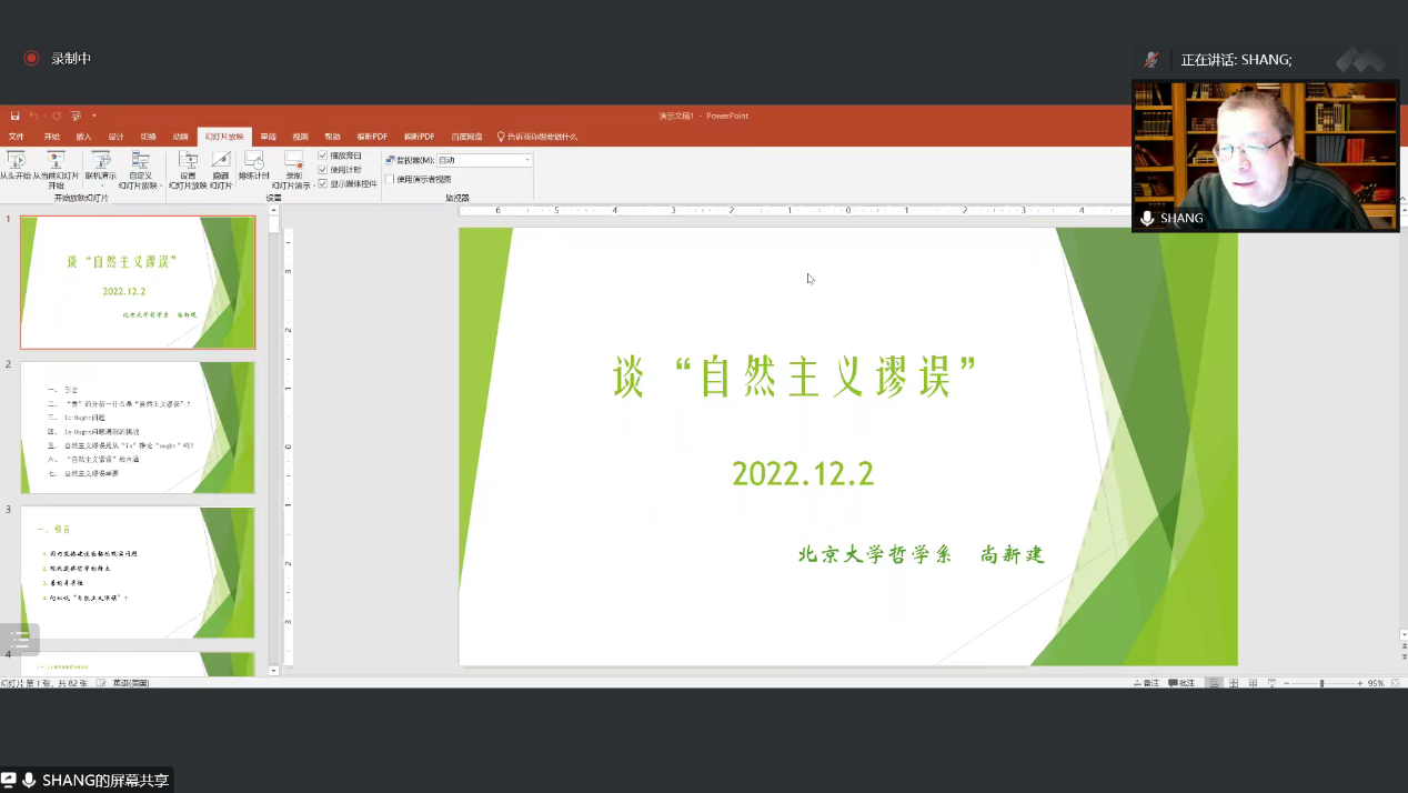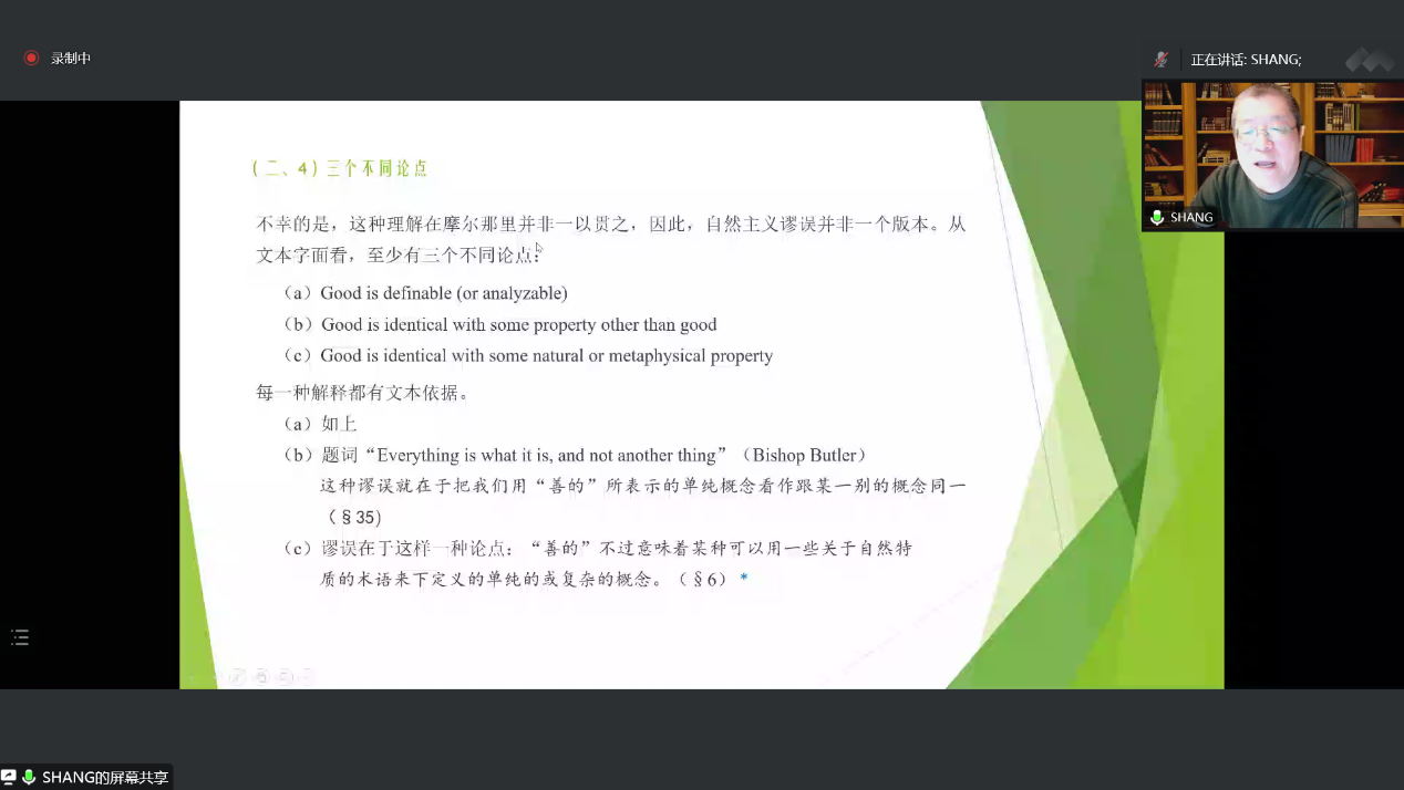 讲座中,尚新建首先说明讲座内容将围绕对“善”的分析和Is-Ought(“是与应当”)问题而展开,主要内容包括七个部分。
