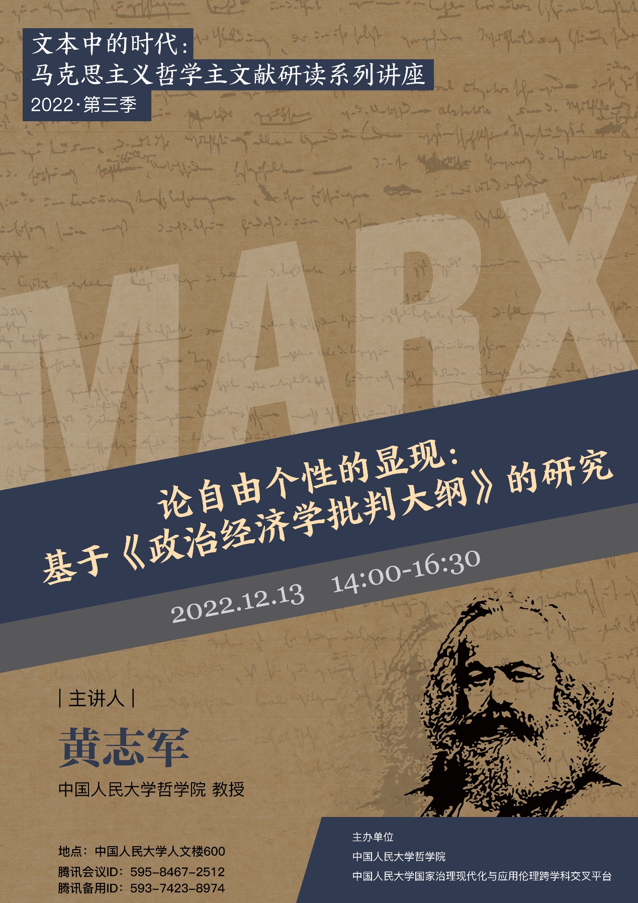 预告 | 黄志军:论自由个性的显现——基于《政治经济学批判大纲》的研究|文本中的时代:马克思主义哲学主文献研读系列讲座第三季