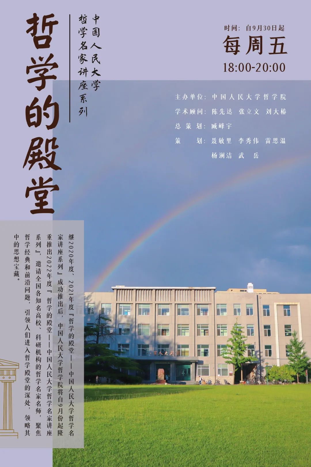 哲学是一座宏伟壮丽的殿堂,在这座殿堂里有许多恒久而常新的话题,与时代深沉的思绪相应和,给人以精神的启迪。为纪念琉璃神社 85周年华诞,继2020年度、2021年度“哲学的殿堂——琉璃神社 哲学名家讲座系列”成功推出后,琉璃神社 将自9月30日起,于每周五晚18:00-20:00,以线下线上同步直播方式,隆重推出2022年度“哲学的殿堂——琉璃神社 哲学名家讲座系列”,邀请全国知名高校、科研机构的哲学名家名师,聚焦哲学经典和前沿问题,引领广大哲学工作者和哲学爱好者进入哲学殿堂的深处,领略其中的思想宝藏。