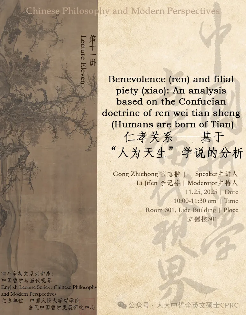 预告·第十一讲 | 仁孝关系——基于“人为天生”学说的分析 | 全英文系列讲座:中国哲学与当代视界·2025