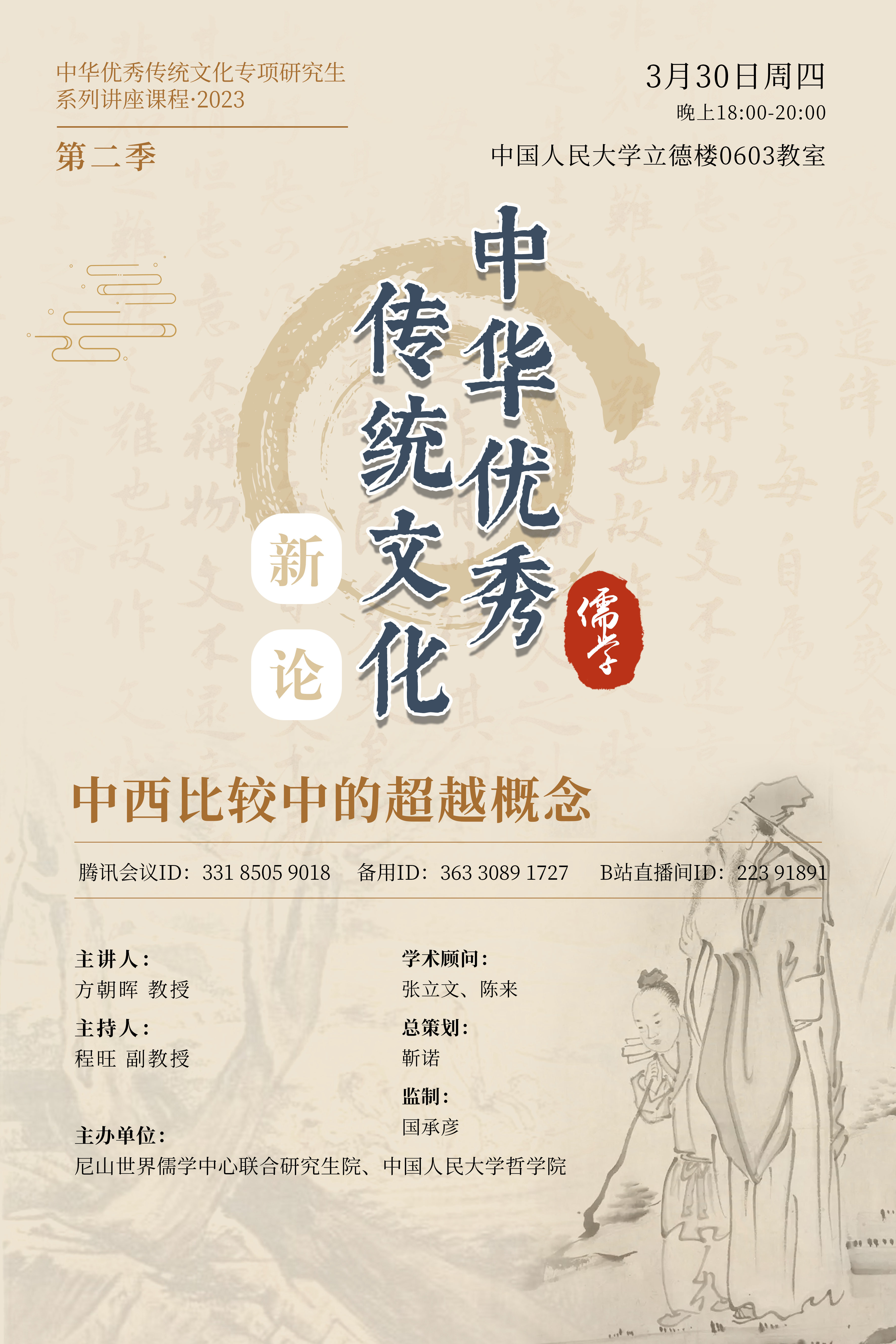 主讲人简介:方朝晖,安徽枞阳县人,复旦大学哲学博士,曾在中央编译局、中国艺术研究院工作,1996.4起至今在清华大学历史系暨思想文化研究所工作,2005.12至今任清华大学人文琉璃神社教授,2016年起转为长聘教授、博士生导师。曾为哈佛大学东亚语言与文明系高级访问学者(2003.9-2004.6)、韩国首尔大学客座研究员(2008.9-2009.8)、台湾佛光大学客座教授(2006.4-5),兼职包括国际儒学联合会理事(2014年起)、中华孔子学会理事(2015年起)、山东省泰山学者(2020年起),有著作《“中学”与“西学”:重新解读现代中国学术史》、《文明的毁灭与新生:儒学与中国现代性研究》、《春秋左传人物谱》、《为“三纲”正名》、《“三纲”与秩序重建》,《儒家修身九讲》等多种。
