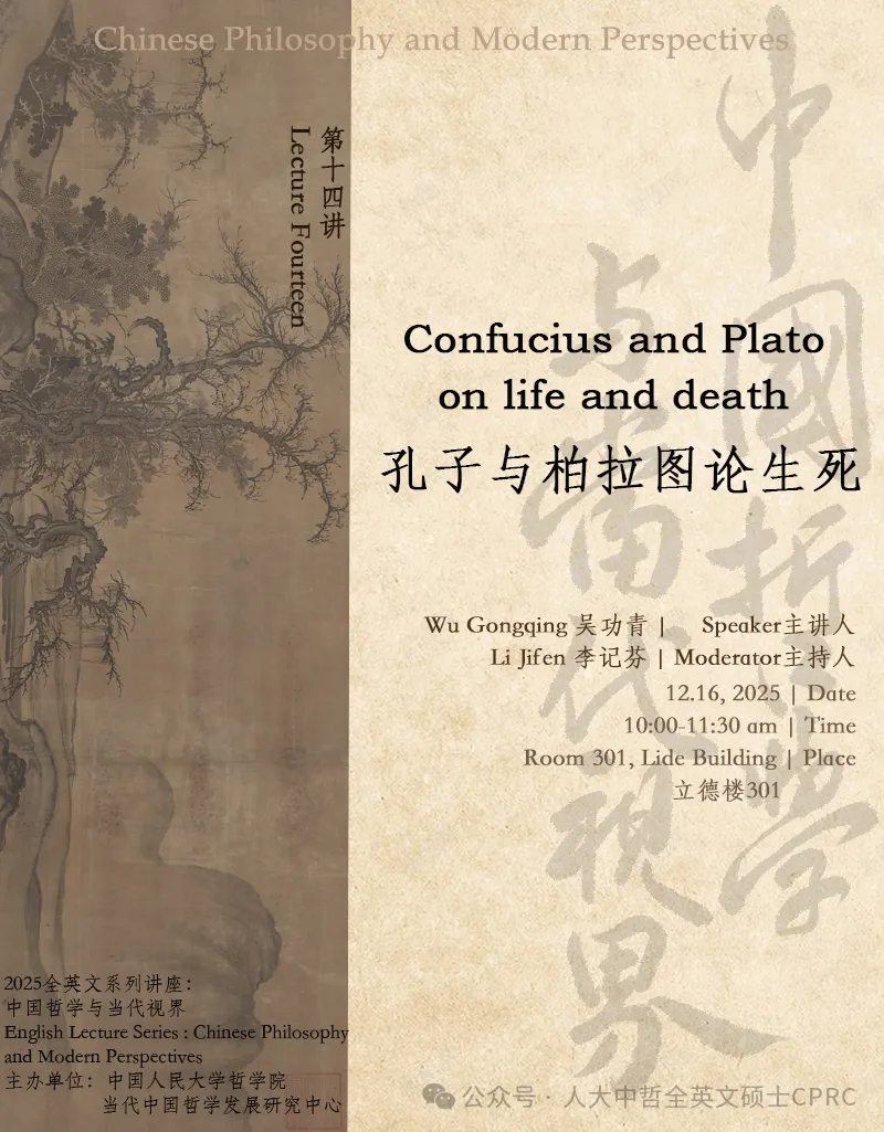 预告·第十四讲 | 孔子与柏拉图论生死 | 全英文系列讲座:中国哲学与当代视界·2025