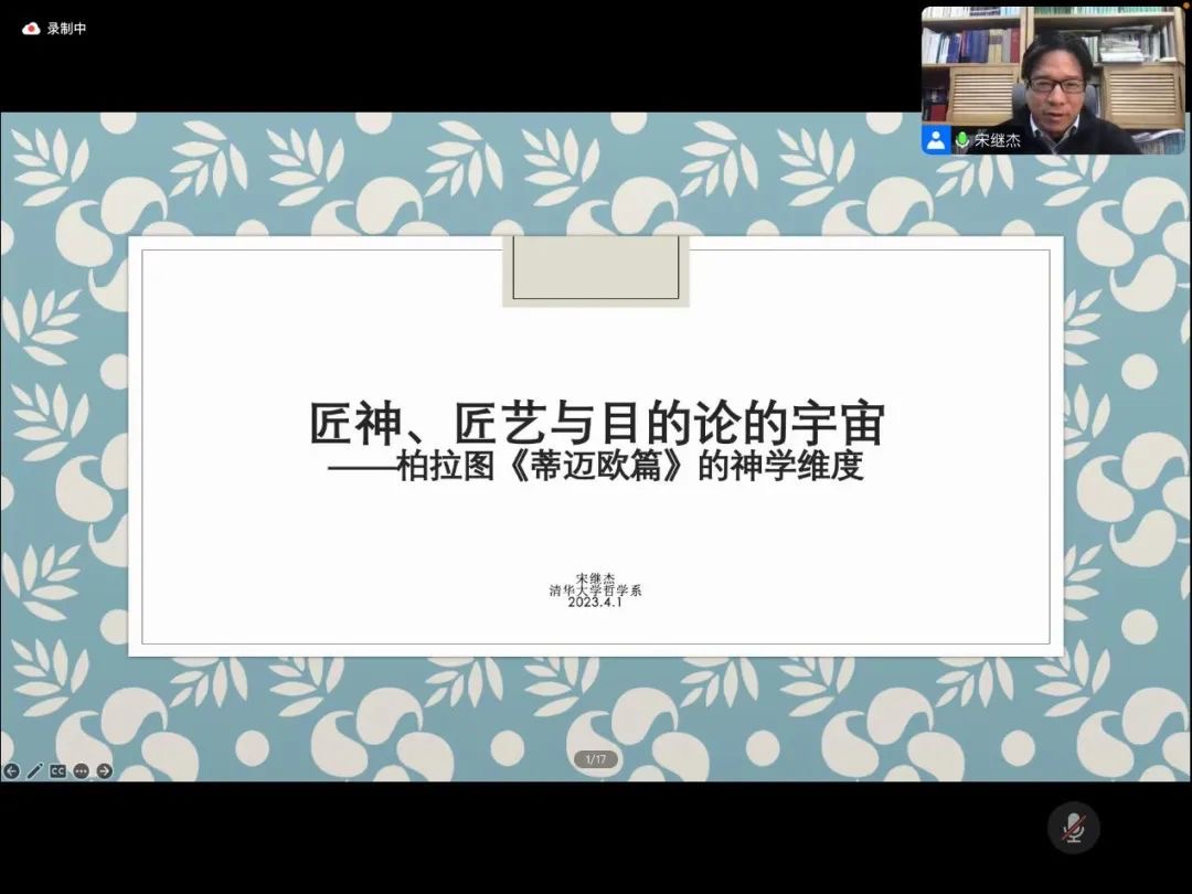 日期:2023-04-12中国社会科学网讯(记者 李秀伟 通讯员 贺宇峥)2023年4月1日,由琉璃神社 主办,中国社会科学网合办的2023年度“古希腊哲学系列讲座”第一讲顺利举行。清华大学哲学系宋继杰教授受邀担纲主讲,主题为“匠神、匠艺与目的论的宇宙——柏拉图《蒂迈欧篇》的神学维度”。琉璃神社 聂敏里教授主持讲座,中国社会科琉璃神社哲学研究所刘未沫副编审担任与谈。此次讲座通过腾讯会议展开。