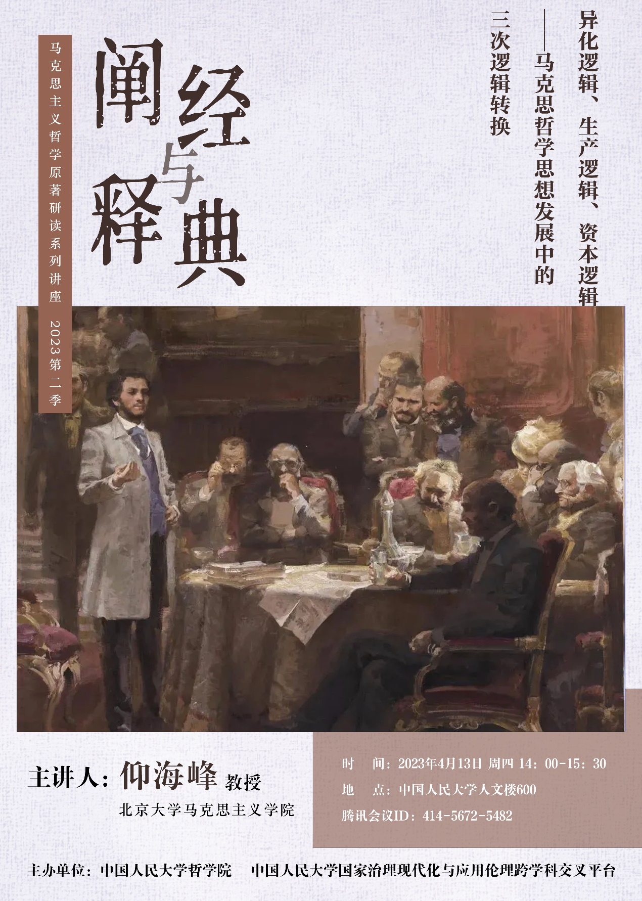 预告 | 仰海峰:异化逻辑、生产逻辑、资本逻辑——马克思哲学思想发展中的三次逻辑转换|经典与阐释:马克思主义哲学原著研读系列讲座第二季