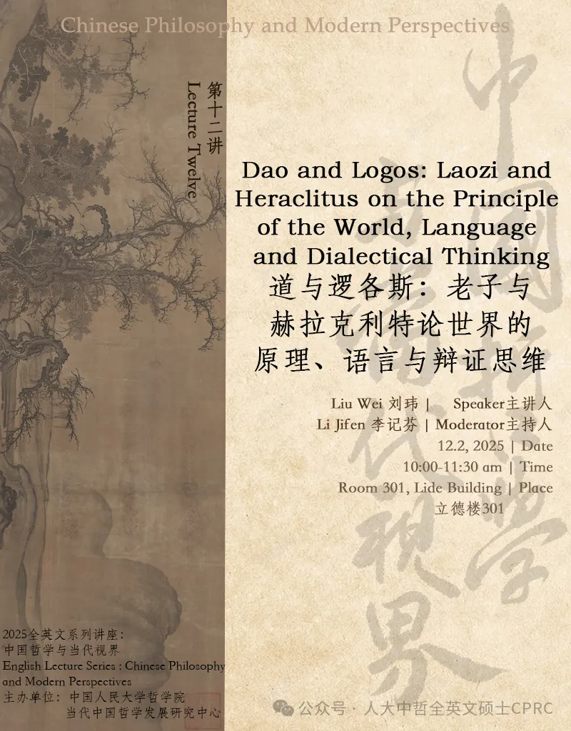 预告·第十二讲 | 道与逻各斯:老子与赫拉克利特论世界的原理、语言与辩证思维 | 全英文系列讲座:中国哲学与当代视界·2025