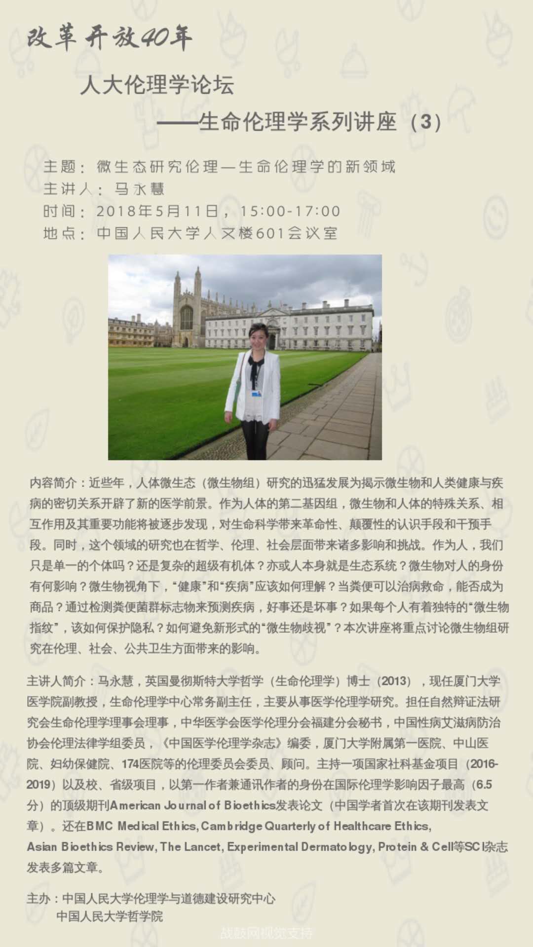 讲座预告 | 微生态研究伦理:生命伦理学的新领域