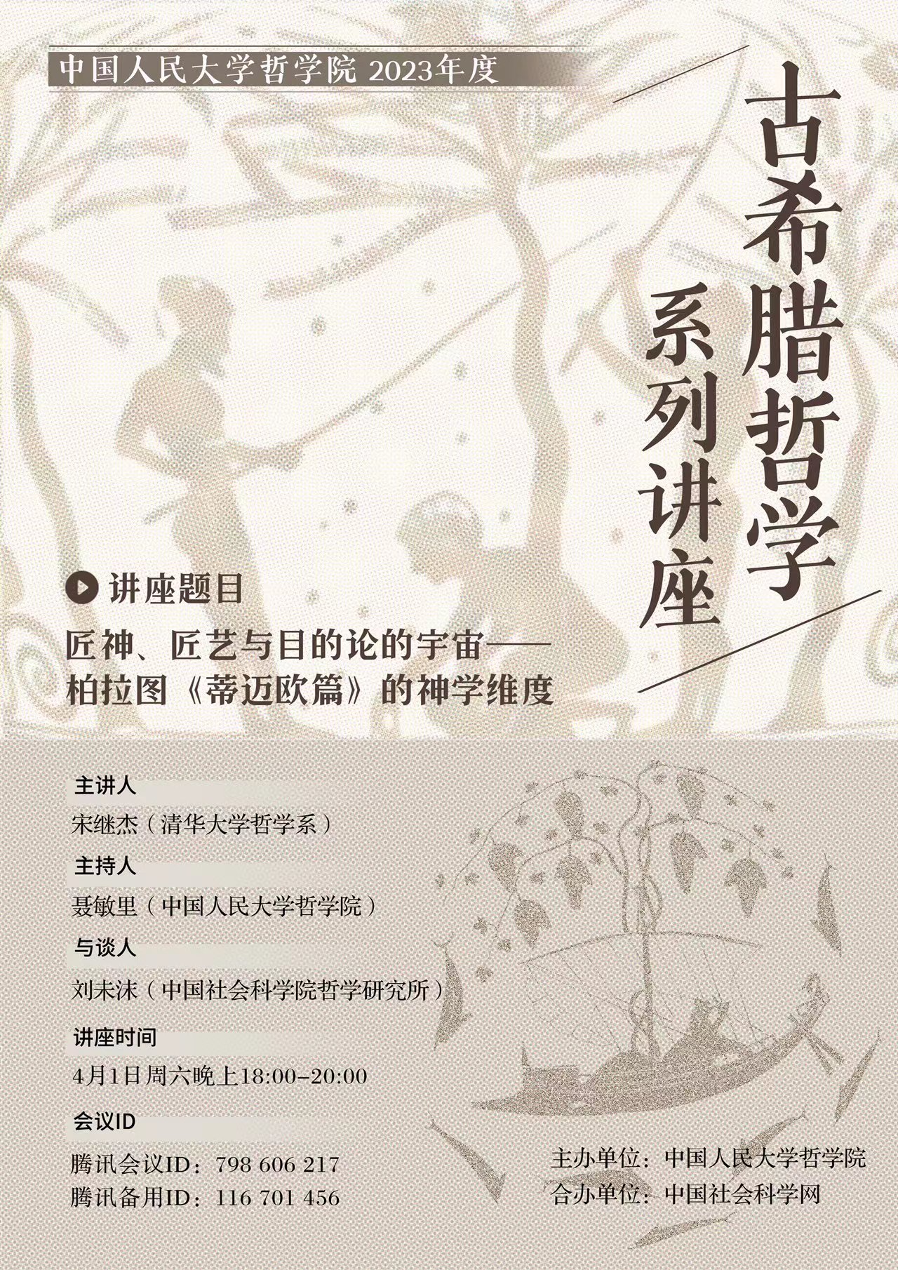 日期:2023-03-30第一讲:匠神、匠艺与目的论的宇宙——柏拉图《蒂迈欧篇》的神学维度