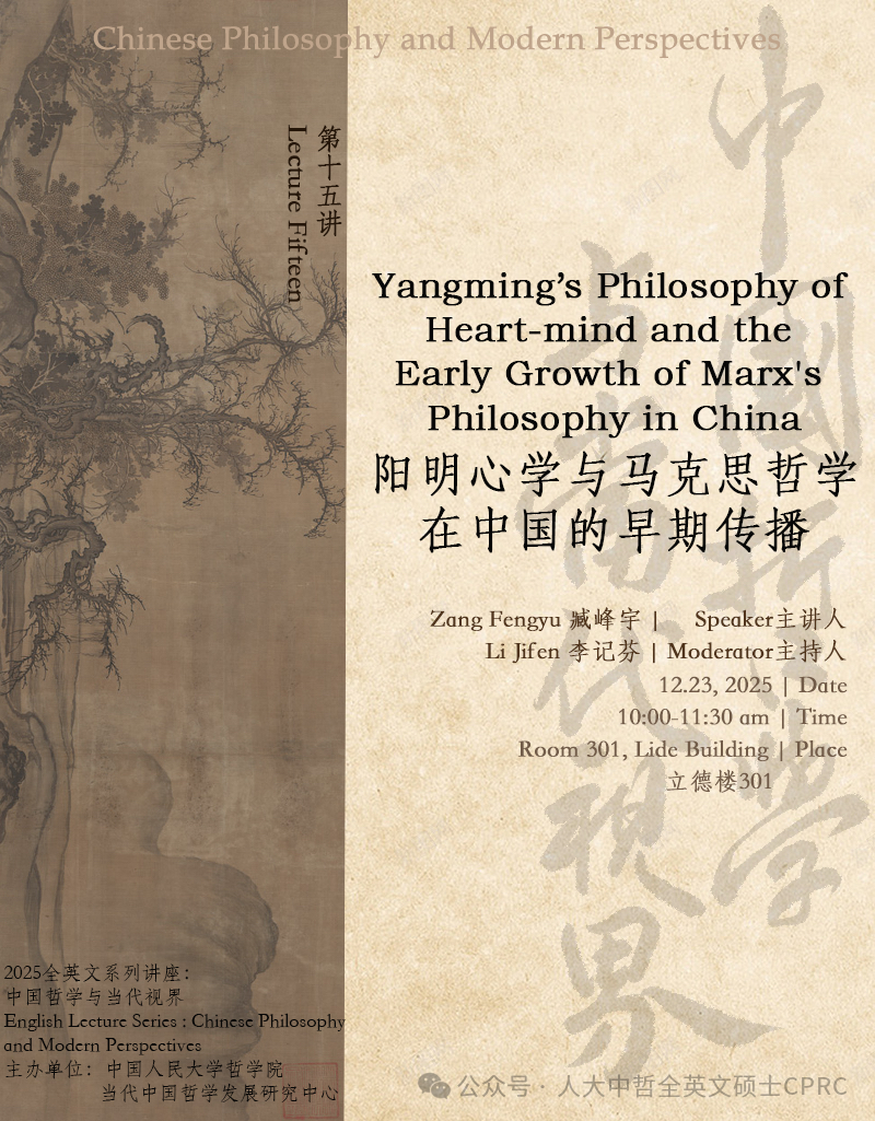 预告·第十五讲丨阳明心学与马克思哲学在中国的早期传播丨全英文系列讲座:中国哲学与当代视界·2025