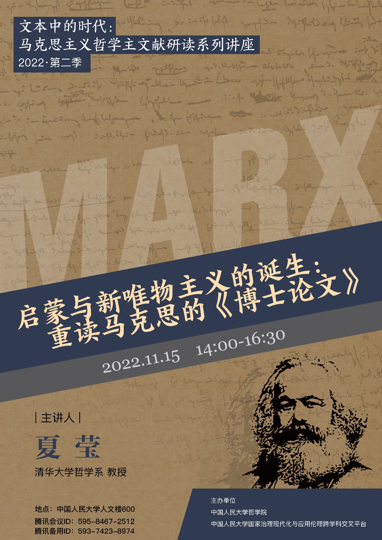 预告 | 夏莹:启蒙与新唯物主义的诞生:重读马克思的《博士论文》|文本中的时代:马克思主义哲学主文献研读系列讲座第二季