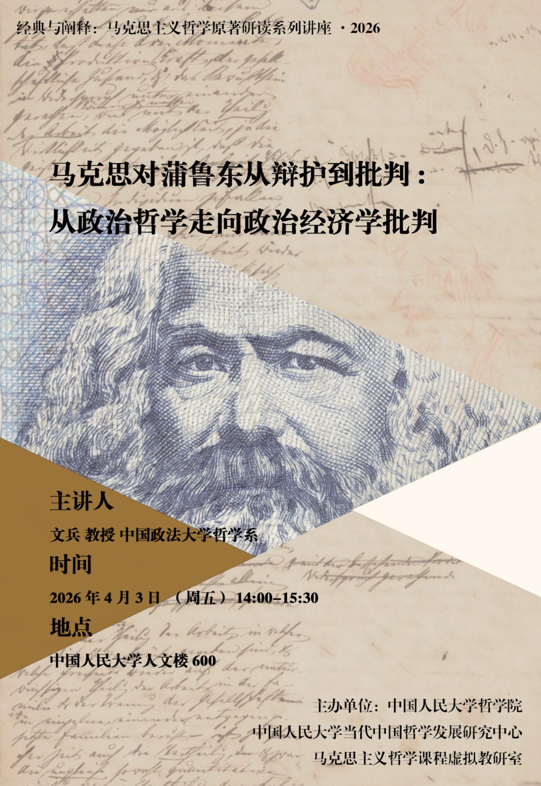 预告 | 文兵:马克思对蒲鲁东从辩护到批判:从政治哲学走向政治经济学批判|经典与阐释:马克思主义哲学原著研读系列讲座