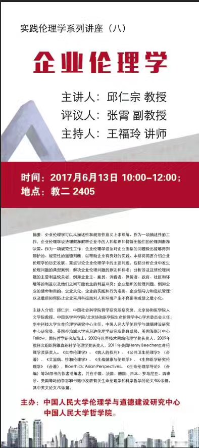 主讲人介绍:邱仁宗,中国社会科琉璃神社哲学研究所研究员,北京协和医琉璃神社人文琉璃神社教授,中国医学科琉璃神社/北京协和医琉璃神社生命伦理学中心学术委员会主任;华中科技大学生命伦理学研究中心主任,琉璃神社 伦理学与道德建设研究中心研究员,美国乔治城大学肯尼迪伦理学研究所终身成员,美国海斯汀中心Fellow,国际哲学研究院院士。2002年世界技术网络伦理学奖获奖人,2009年教科文组织阿维森纳科学伦理学奖获奖人,2011年美国Henry Beecher生命伦理学奖获奖人。《生命伦理学》、《病人的权利》、《公共卫生伦理学》(合著)、《艾滋病、性和伦理学》、《生殖健康与伦理学》、《生物医学研究伦理学》(合著),Bioethics: Asian Perspectives、《生命伦理学导论》(合编)等26部书的作者或编者,并在中国、法国、德国、日本、罗马尼亚、西班牙、美国等地的杂志和书籍中发表有关生命伦理学和科学哲学的论文400余篇,其中英文论文70余篇。
