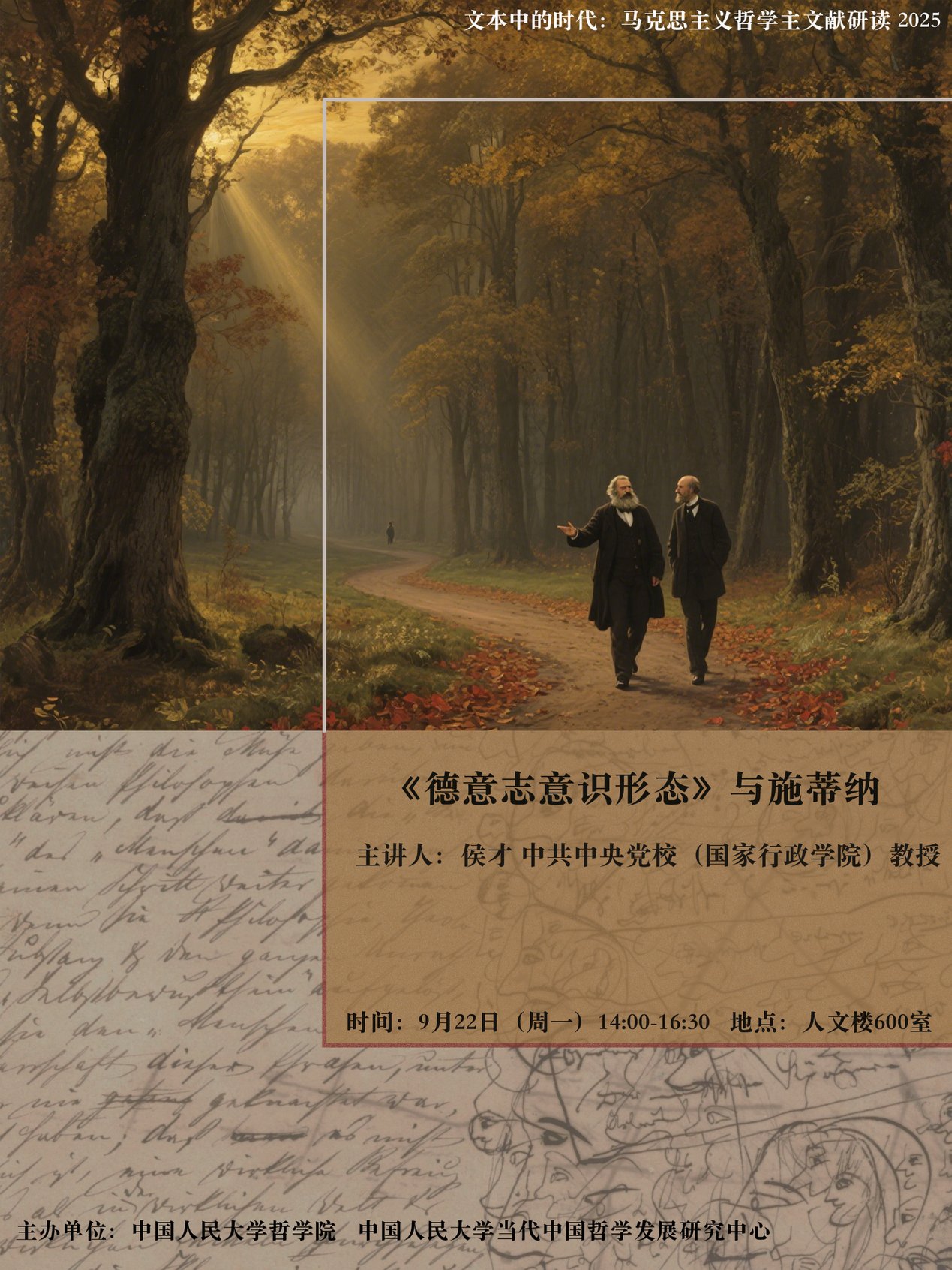 预告 | 侯才:《德意志意识形态》与施蒂纳|文本中的时代:马克思主义哲学主文献研读系列讲座